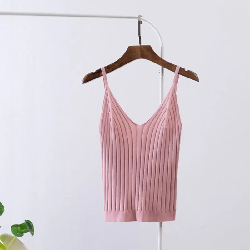 Топ женский трикотажный, без рукавов, с глубоким V-образным вырезом