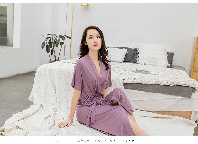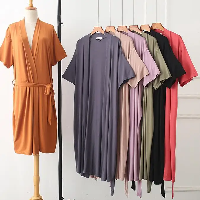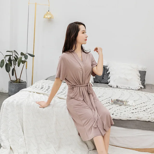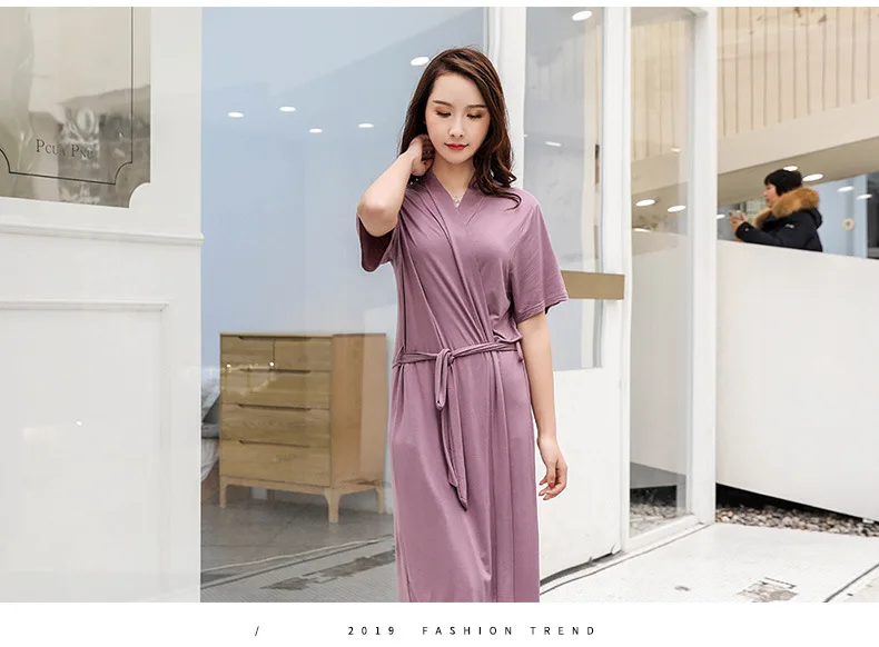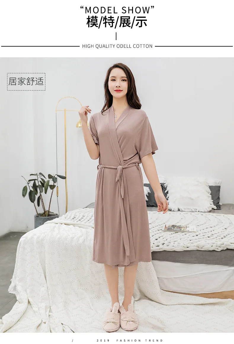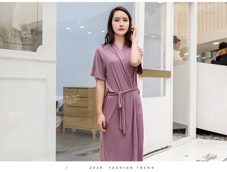 Халат женский с коротким рукавом, тонкая пижама из модала, свободного покроя, хлопковая Домашняя одежда, халат для отпуска, ночная рубашка, лето 2020