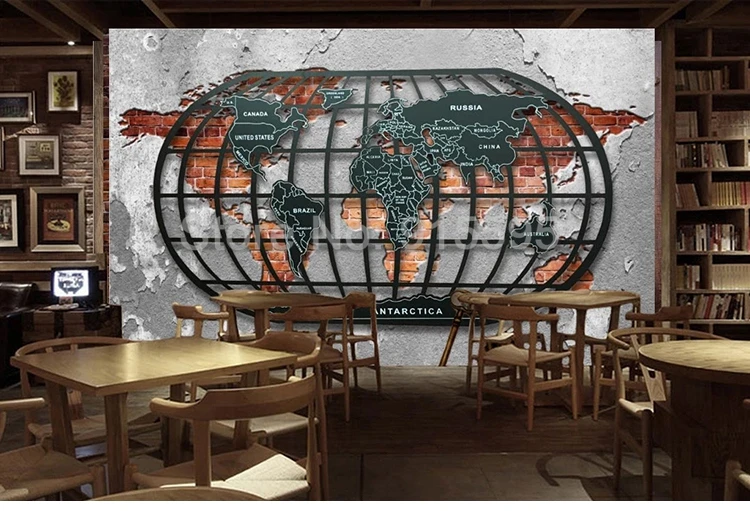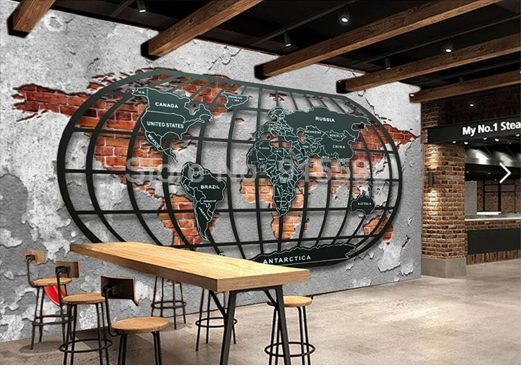 Настенные 3D обои на заказ в стиле ретро, ностальгические рельефные металлические обои с картой мира, бара, ресторана, украшение для дома, живопись, настенное искусство