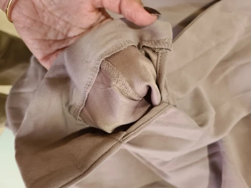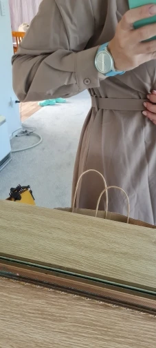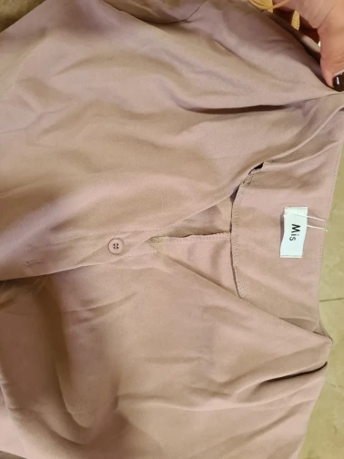 Цвет отличается от фото, широкое, приходится самой его как-то собирать под ремень, не очень красиво спереди, видны строчки и они не на одном уровне. Ткань плотная, хорошая, не просвечивает. Внутри все прошито качественно. Когда отпарю, добавлю фото. В подарок положили резинку для волос, спасибо.