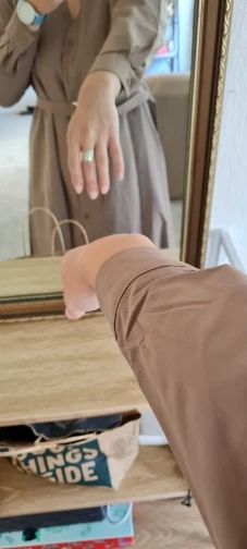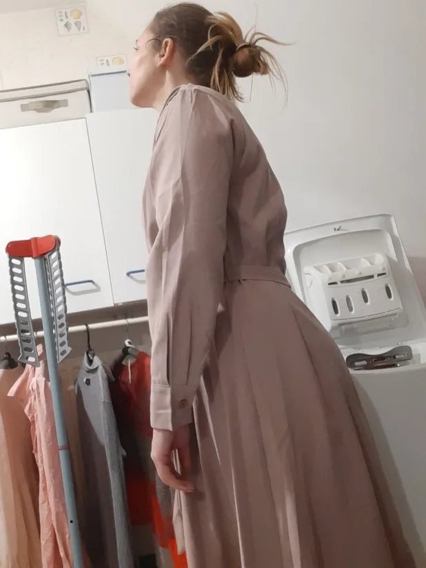 Платье хорошего качества, но с моим ростом 170 рукава коротковаты. Цвет отличается от картинки, он не бежевый а розоватый. Нужно хорошо подобрать под него макияж и причёску, потому как, оно может сделать тебя серой молью