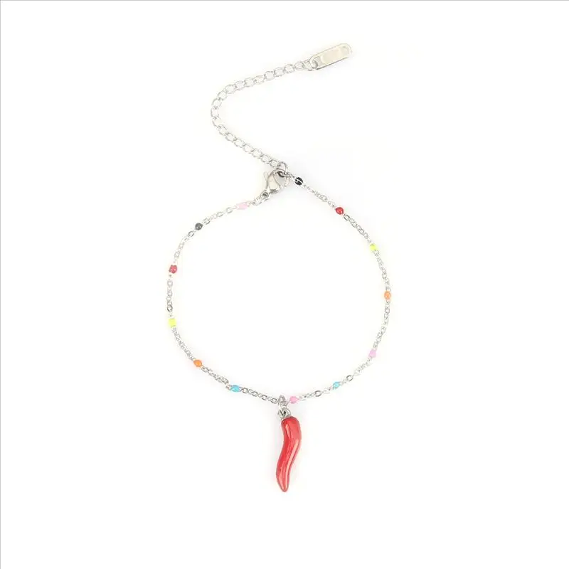 Женские браслеты из нержавеющей стали, многоцветные, с эмалью Чили, длиной 17,5 см, 1 шт.