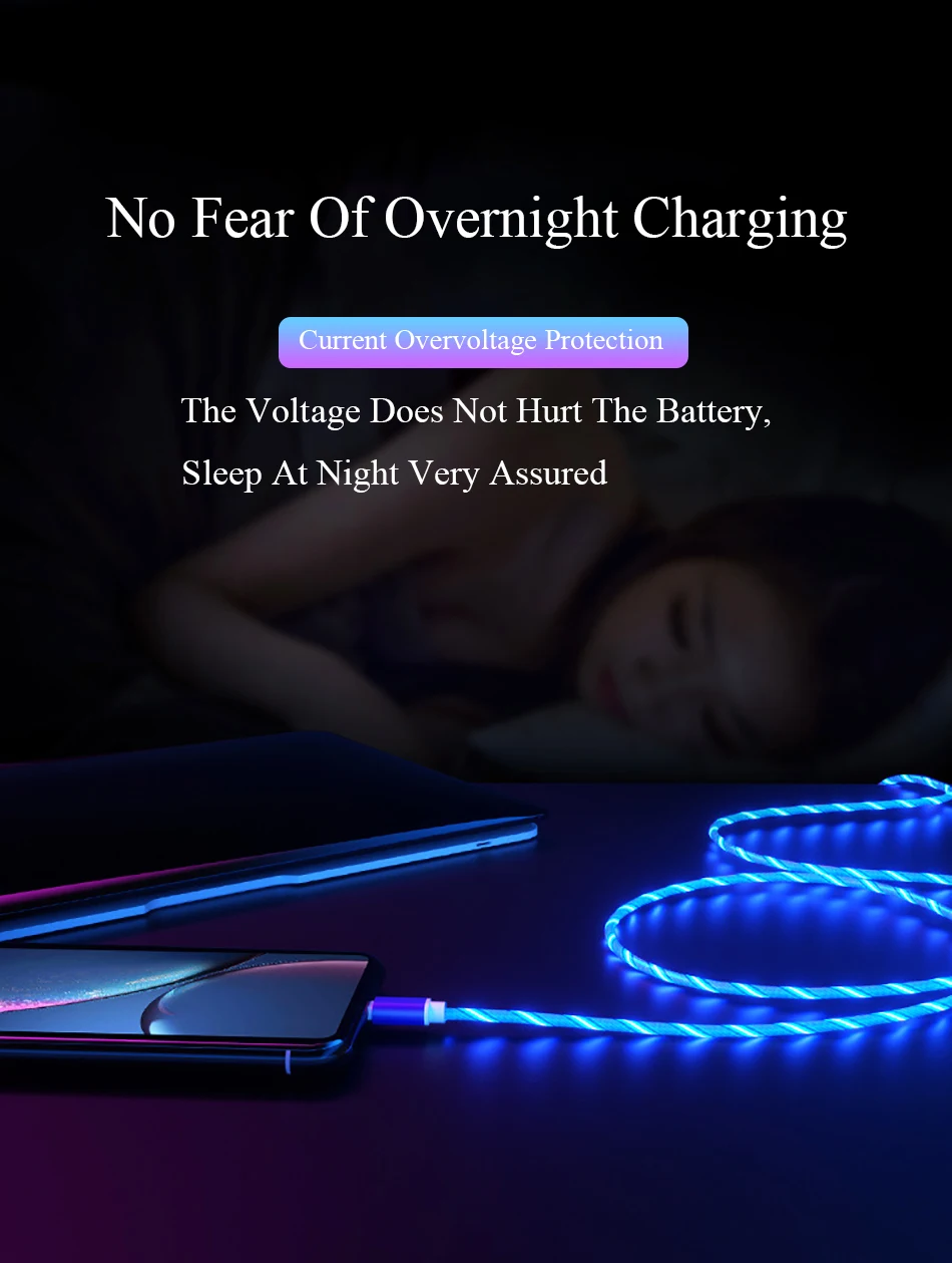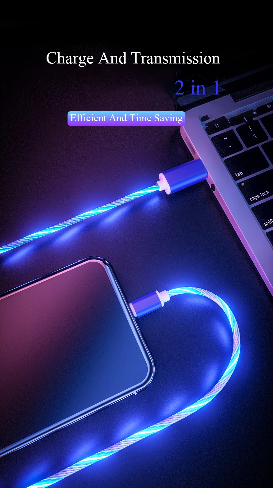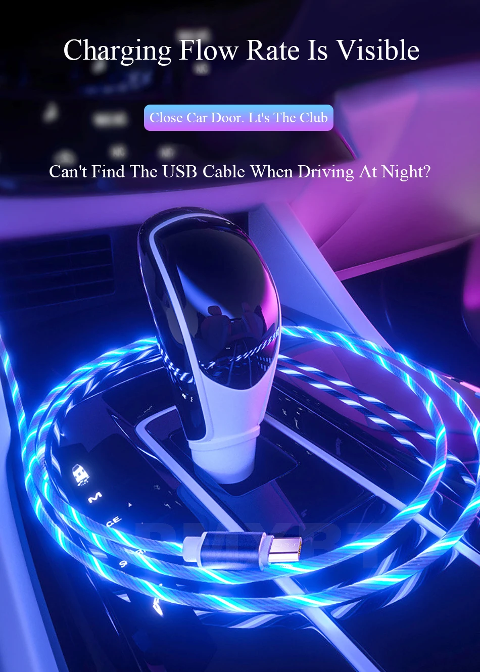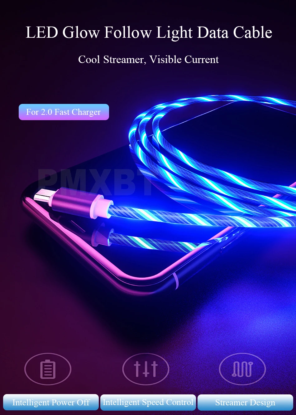 Зарядный кабель Micro USB Type-C, со светодиодной подсветкой, для телефонов Android, Huawei