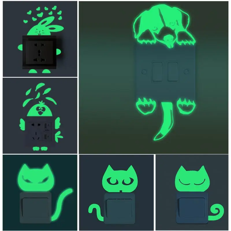 Светящиеся дневные флуоресцентные наклейки на стену, домашний декор, наклейка для детской комнаты, декоративная наклейка с котом