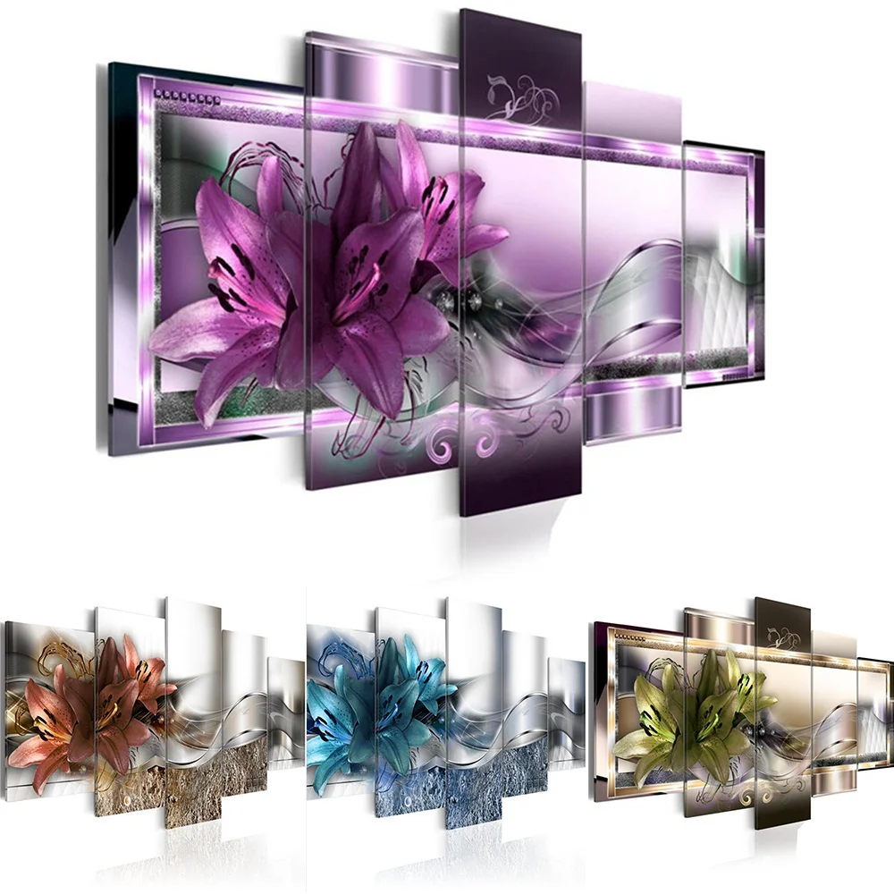 Алмазная вышивка Huacan Lily, алмазная живопись, мозаика с цветами, полная квадратная мульти-картина, 5 шт.компл., украшение для дома