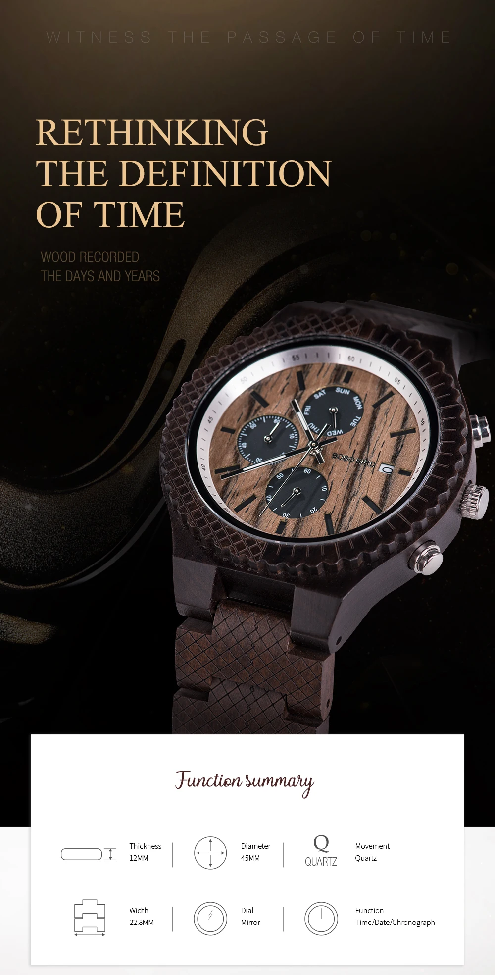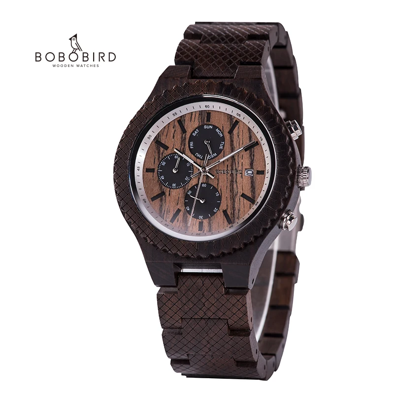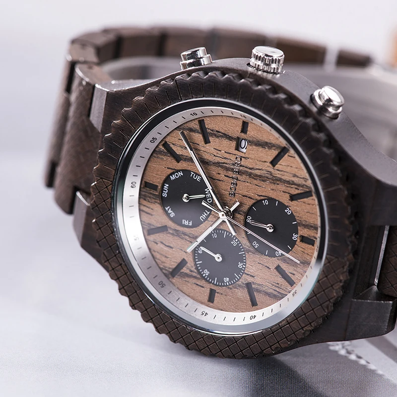 Часы мужские деревянные в стиле милитари, с хронографом