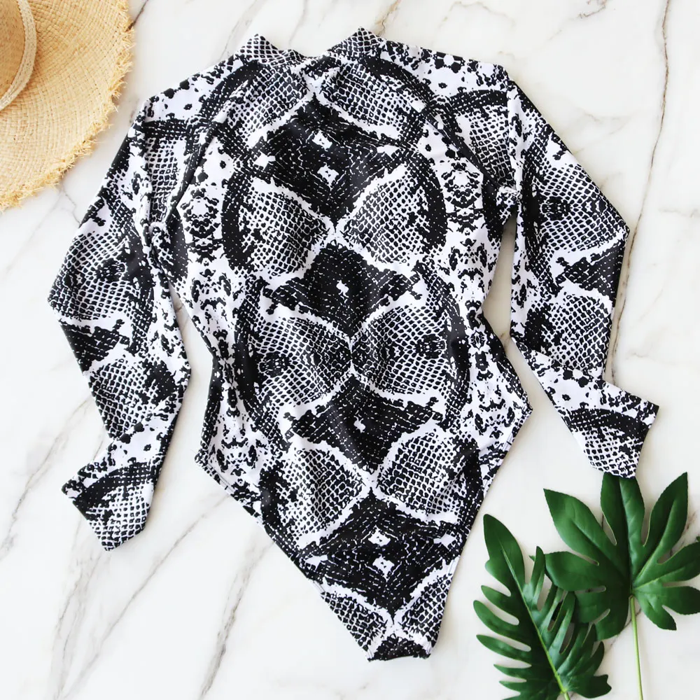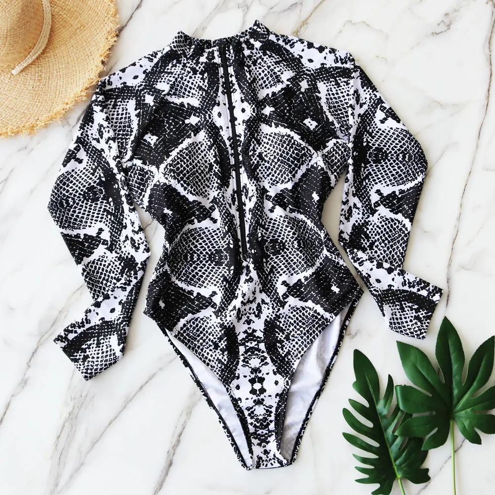 2022, Рашгард, длинный рукав, купальник, сдельный, купальник с принтом, Женский монокини, купальник, пляжная одежда, боди, летние купальники