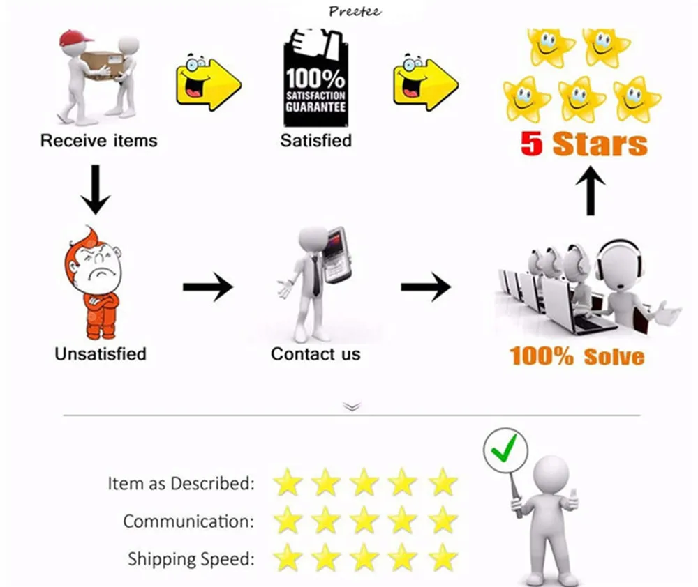 Если у вас есть какие-либо вопросы и проблемы, пожалуйста, свяжитесь с нами, прежде чем оставлять отрицательотзывы в или требовать спора, мы ответим
