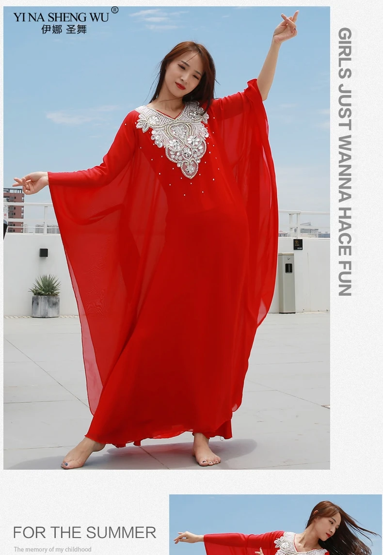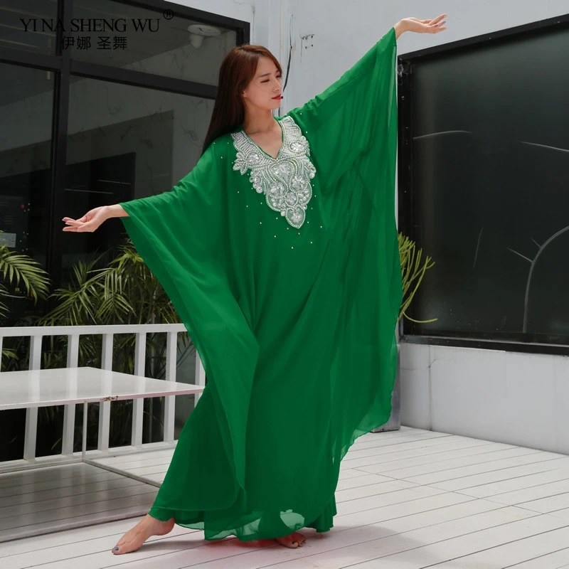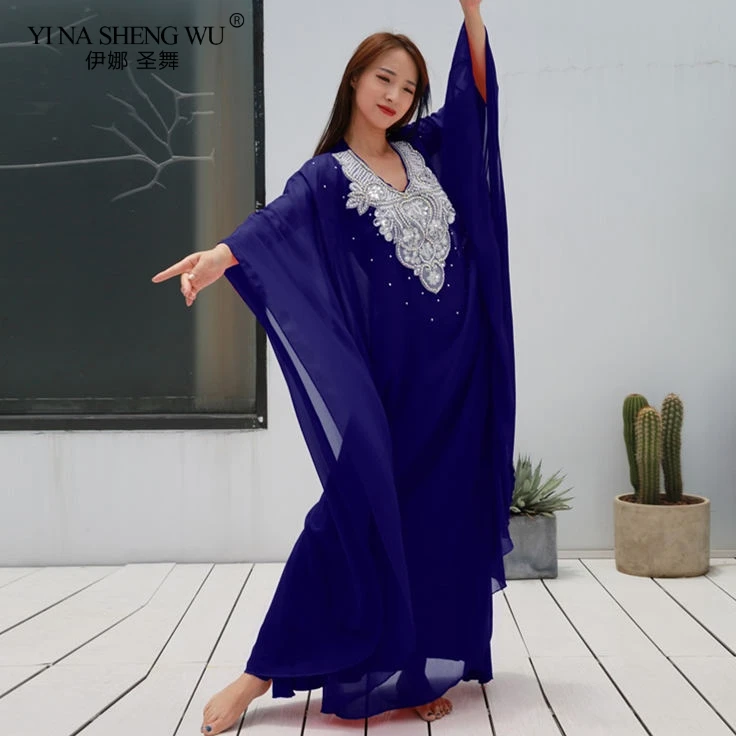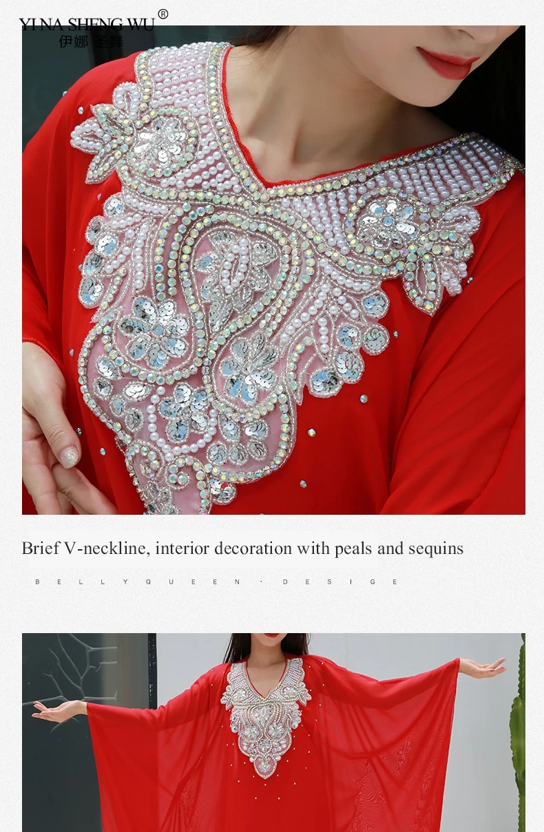 Новая женская Одежда для танцев, одежда для танца живота, платье-кафтан с блестками, шифоновое традиционное платье Khaleeji, платья для танца живота, 2 шт.