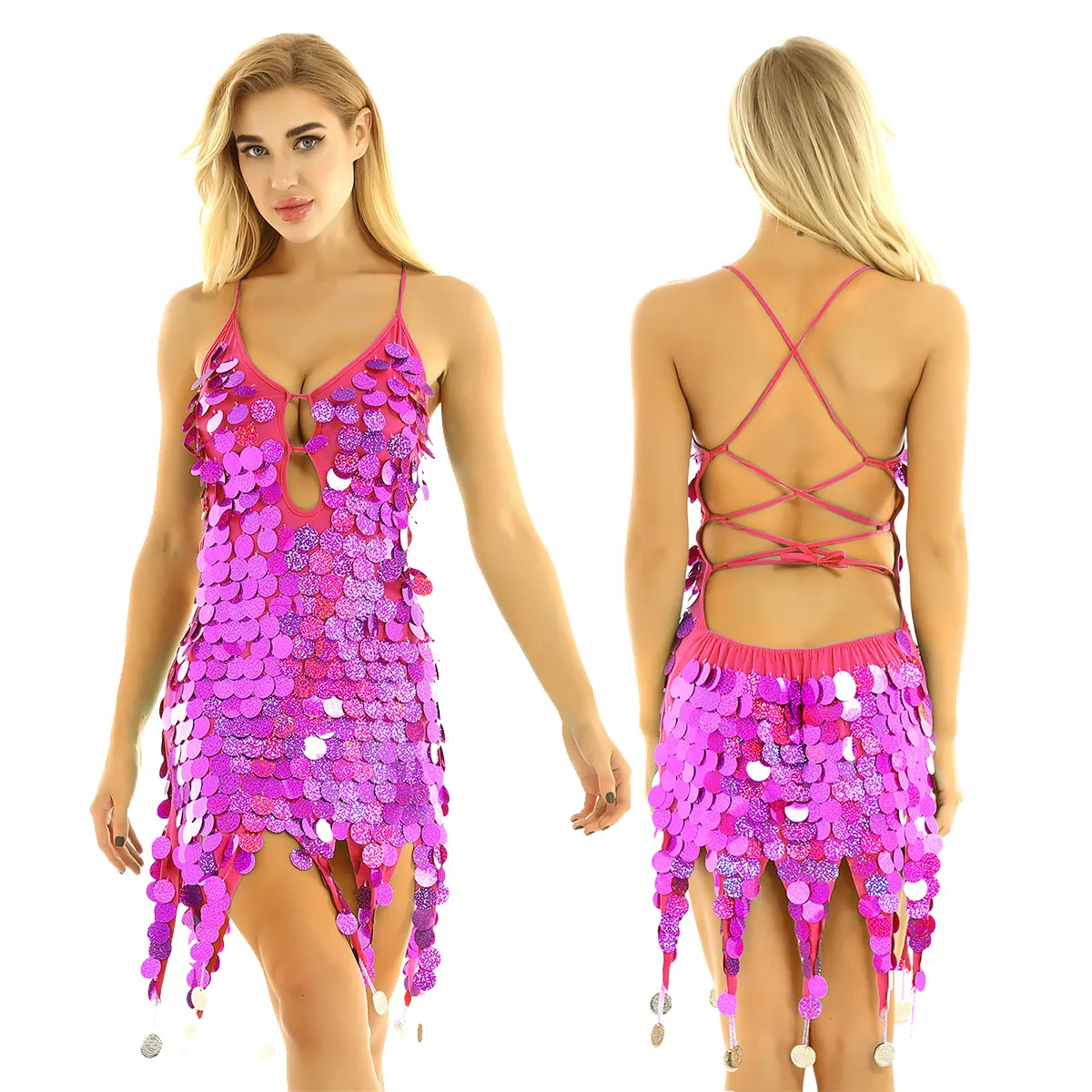 Женское блестящее платье с v-образным вырезом на шее для латинских танцев сальса танго ча сценический костюм