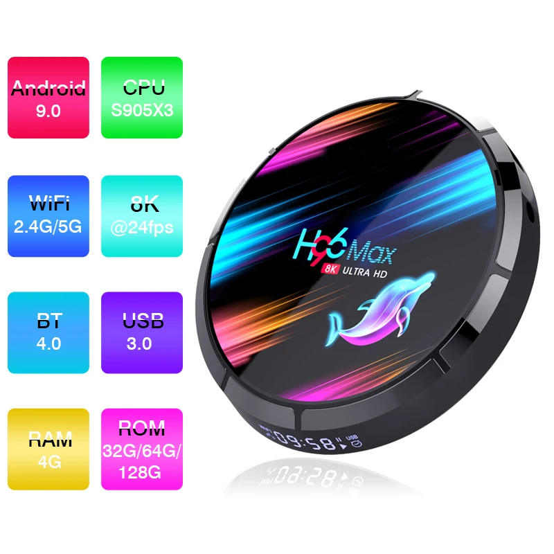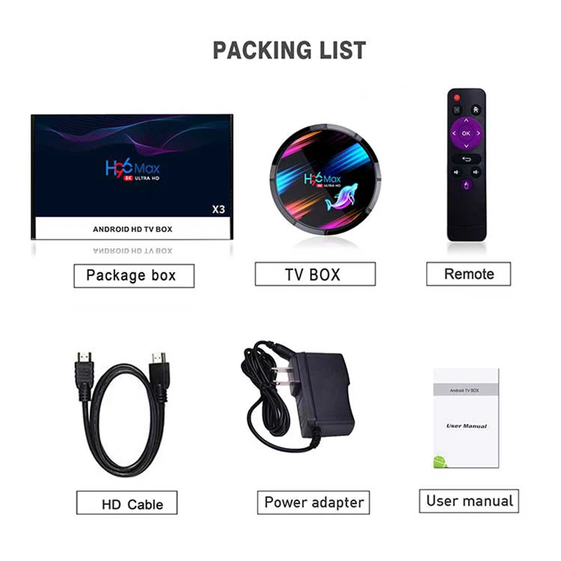 ТВ-приставка H96 Max X3 android настроена с 4 Гб DDR3 DRAM и с 32 ГБ/64 Гб/128 ГБ опцией памяти eMMC. Он приносит вам гладкую прозрачность, чтобы вы могли наслаждаться просмотром телевизора и играми в игры свободно!