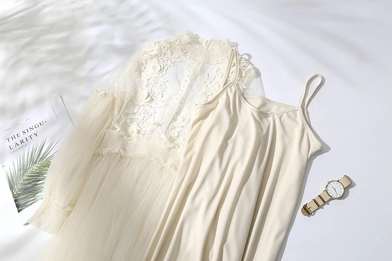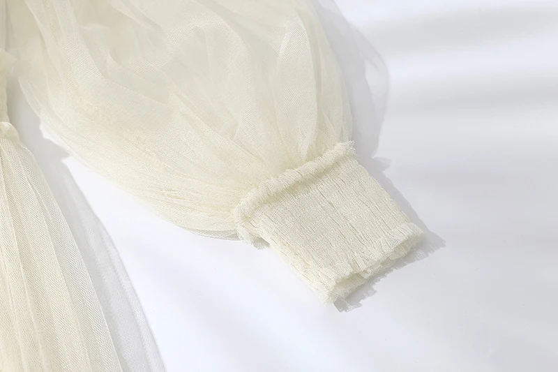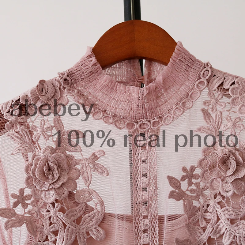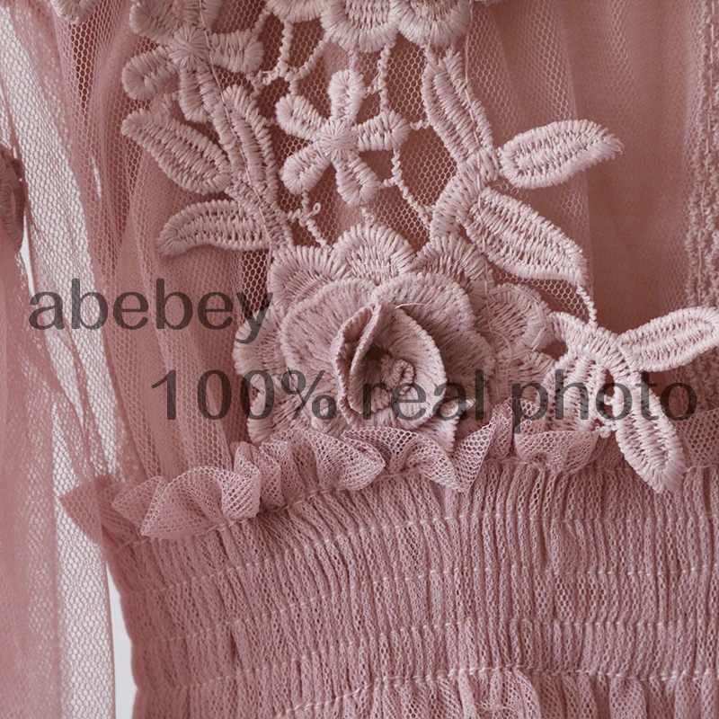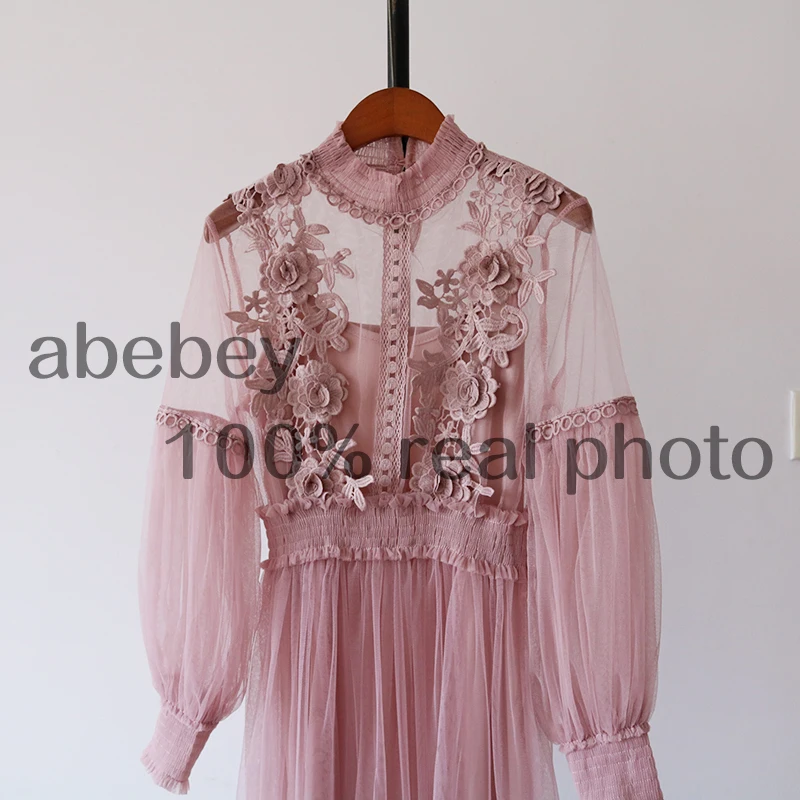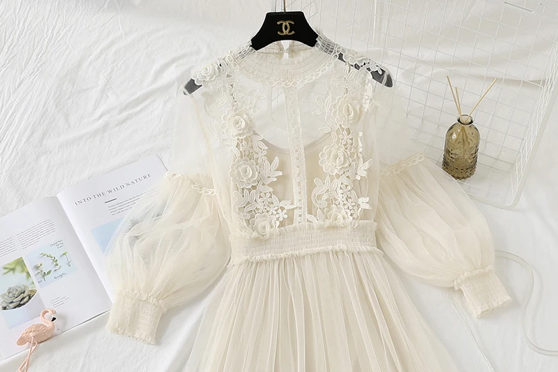Женское Сетчатое платье с воротником-стойкой, прозрачное кружевное платье с рукавами-фонариками и вышивкой, 2022