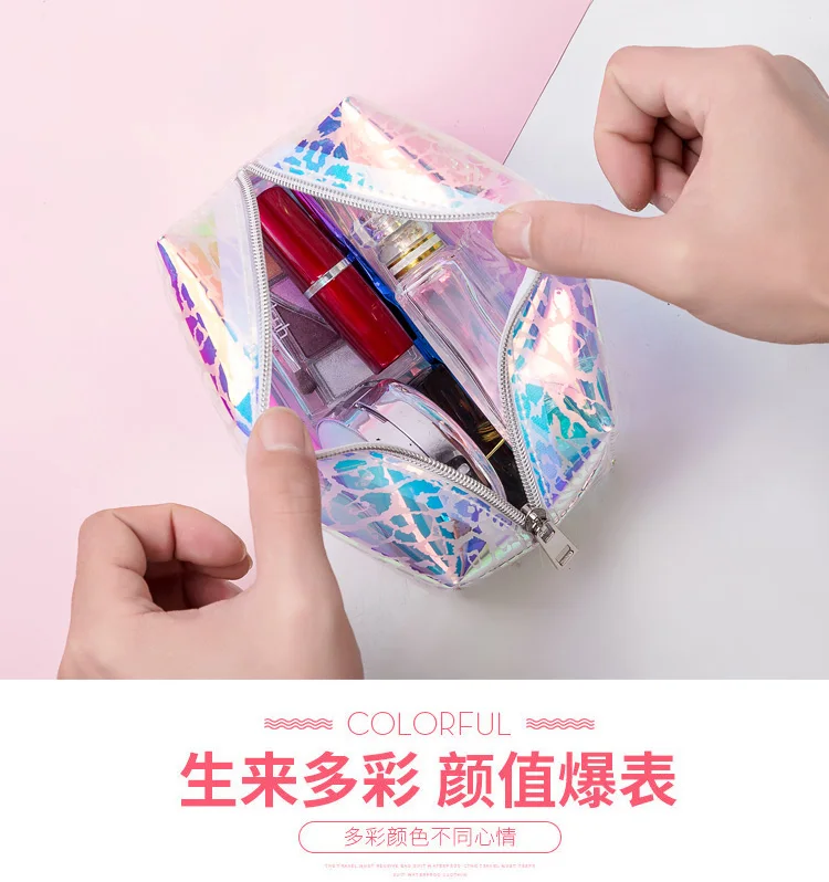 Косметичка, Женская Портативная сумка из ПВХ с лазерным рисунком, милая Женская модная косметичка, дорожные сумки для органайзера