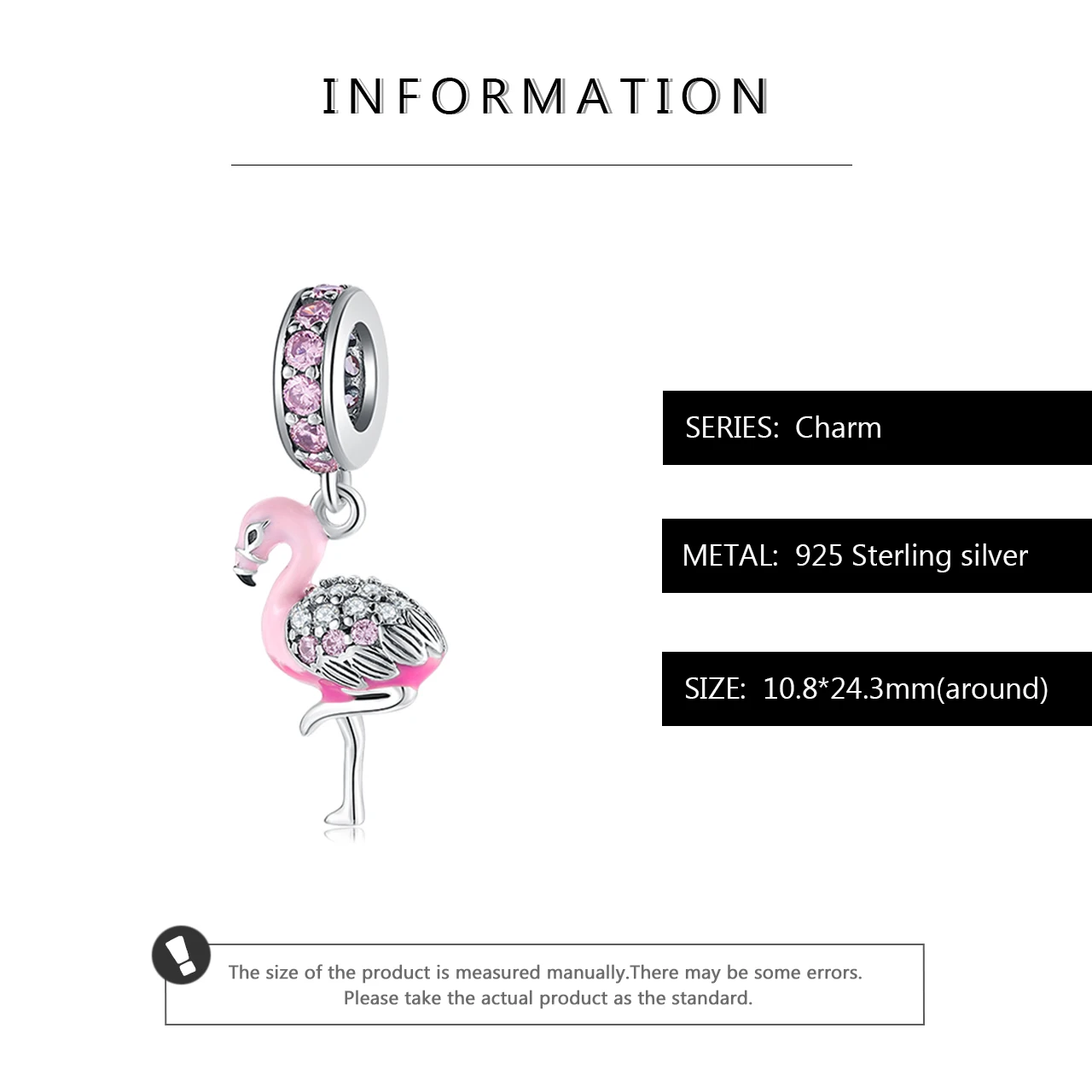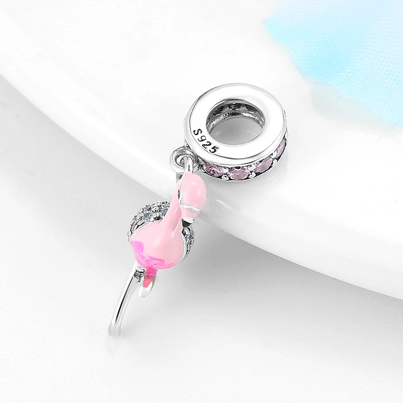 Аутентичные 925 пробы Серебристые розовые эмалированные сверкающие Фламинго CZ тонкие бусины подходят для изготовления оригинальных браслетов PANDORA