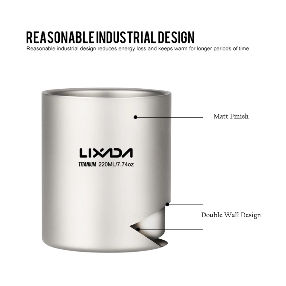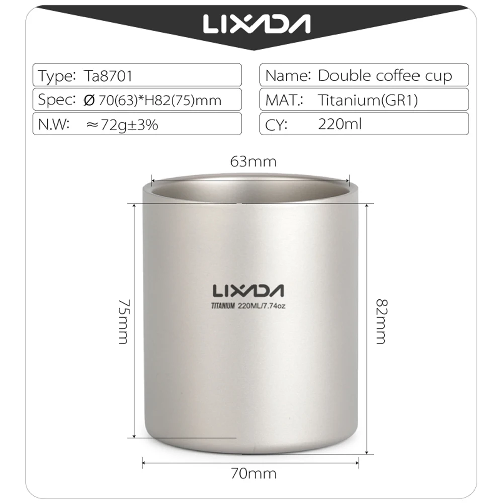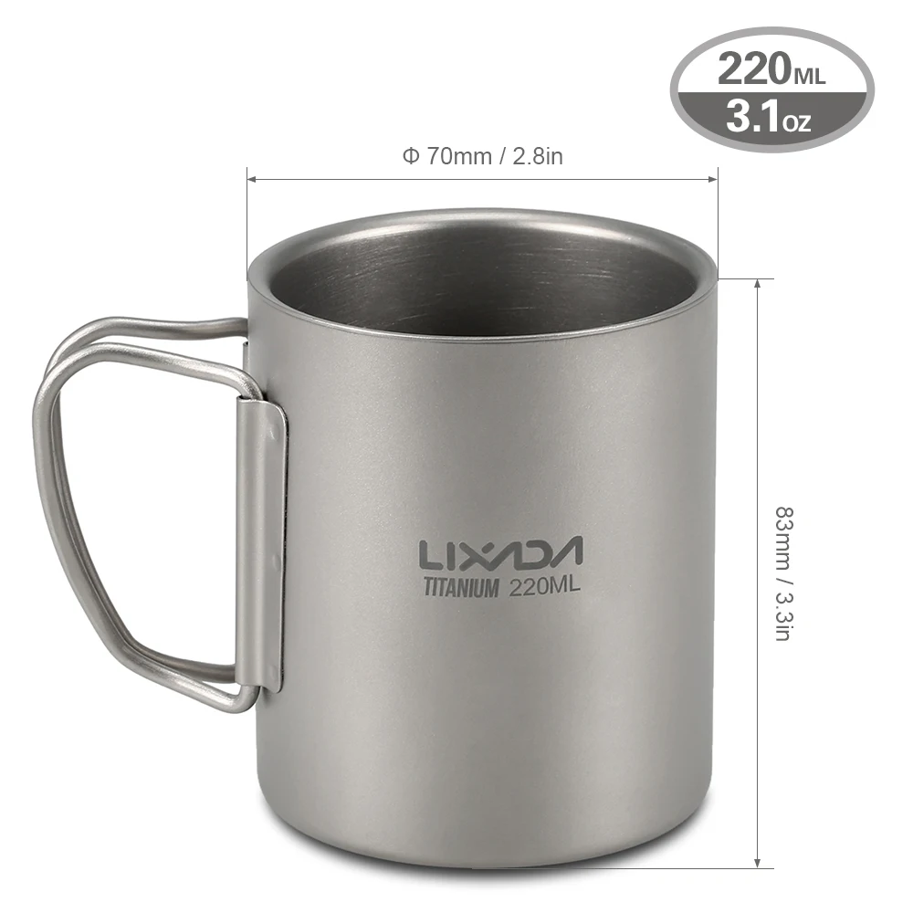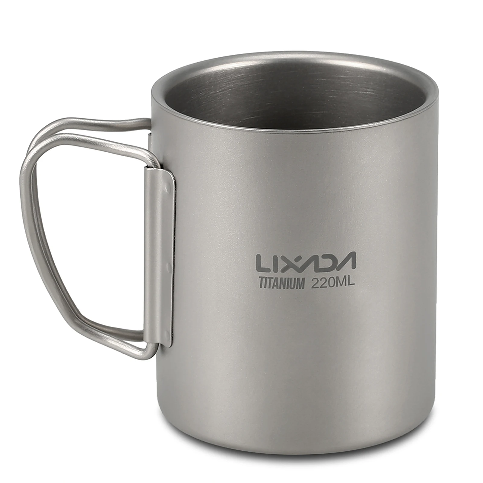 Титановая чашка Lixada с двойными стенками, 220 мл, чашка для воды, кофе, чая, Кружка со складной ручкой, титановая чашка с двойными стенками, кружка для воды, кофе, чая