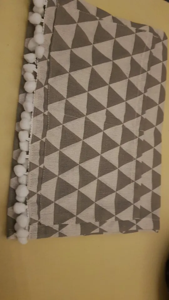 Пришло хорошо упакованным. Подходит для моей микроволновки идеально (30 на 90) и под цвет кухни очень подошло:) качество самой салфетки хорошее, симпатичные помпоны на краях и удобные кармашки. Рекомендую!!!