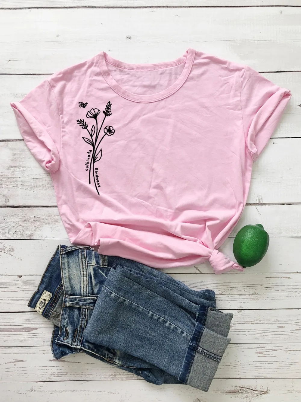 Футболка с графическим изображением цветов культивации дружбы, забавные повседневные футболки с круглым вырезом и цветами в эстетике гранж, 100% хлопок, футболки на День святого Валентина