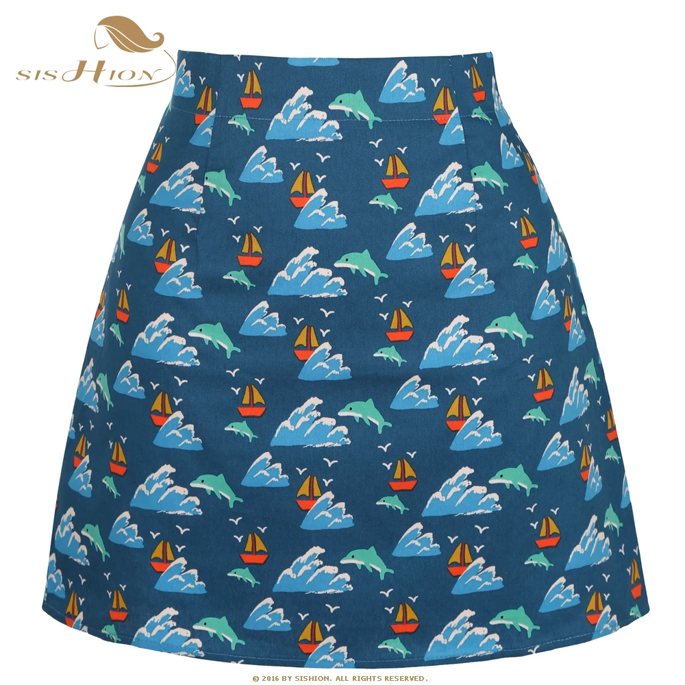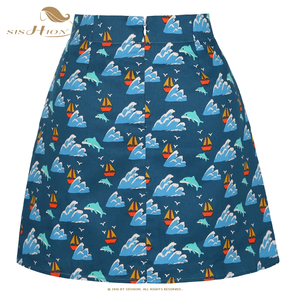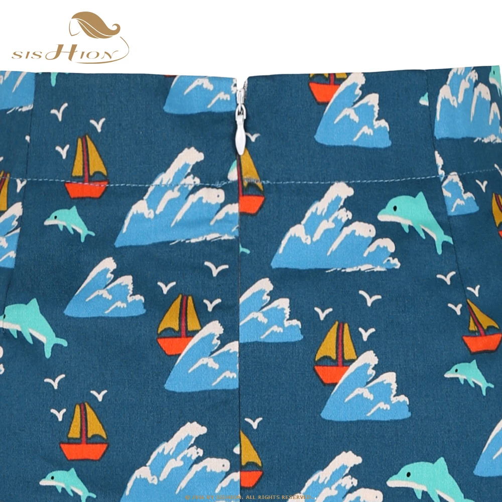 Женская Праздничная пляжная летняя юбка SISHION 2021 SS0008, хлопковая трапециевидная мини-юбка с принтом дельфинов, повседневная женская пикантная юбка
