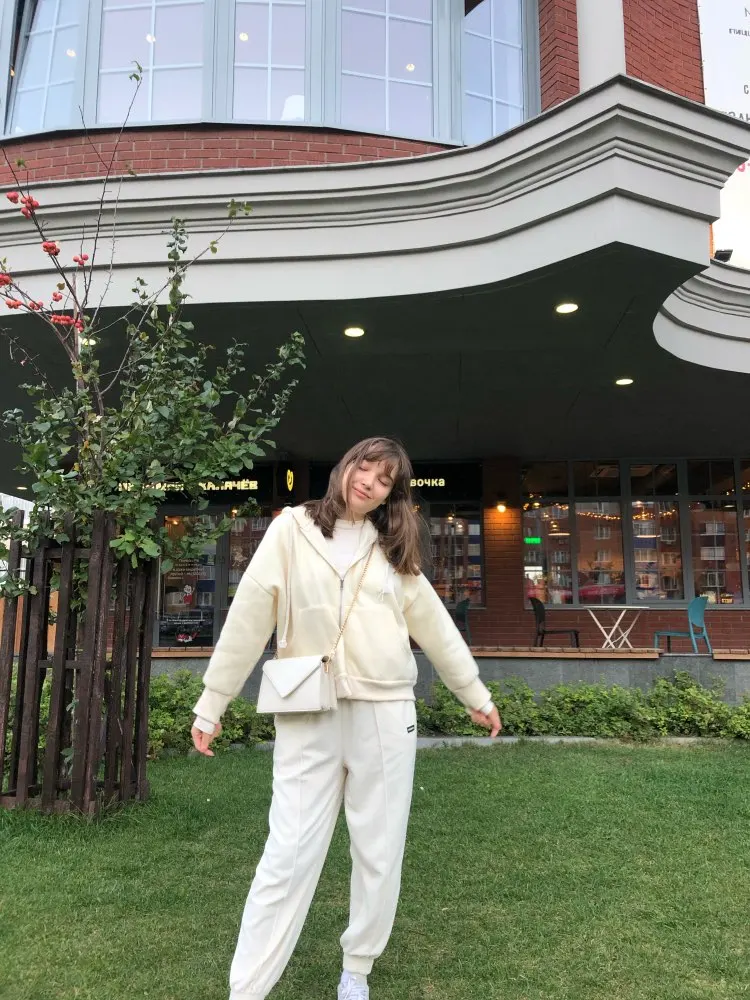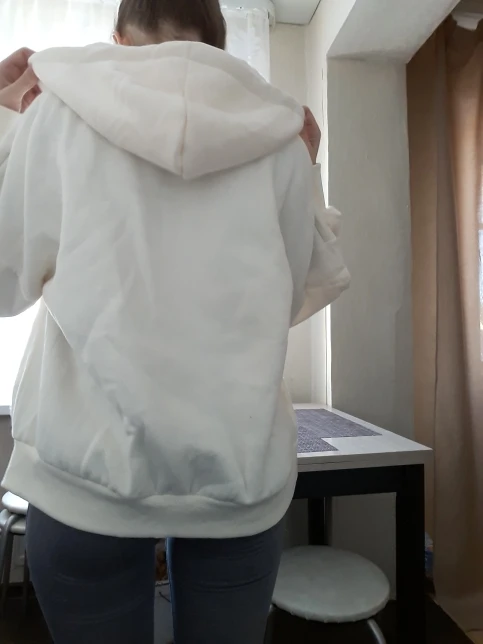 потрясающая, мягкая, светло-бежевая толстовка. На фото девушки ниже 165 по всей видимости, с этим ростом мне эта кофта по начало ягодиц, чуть ниже возможно. А так, я очень довольна, спасибо :)
