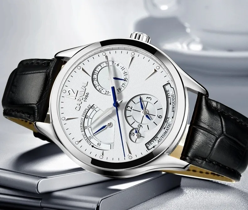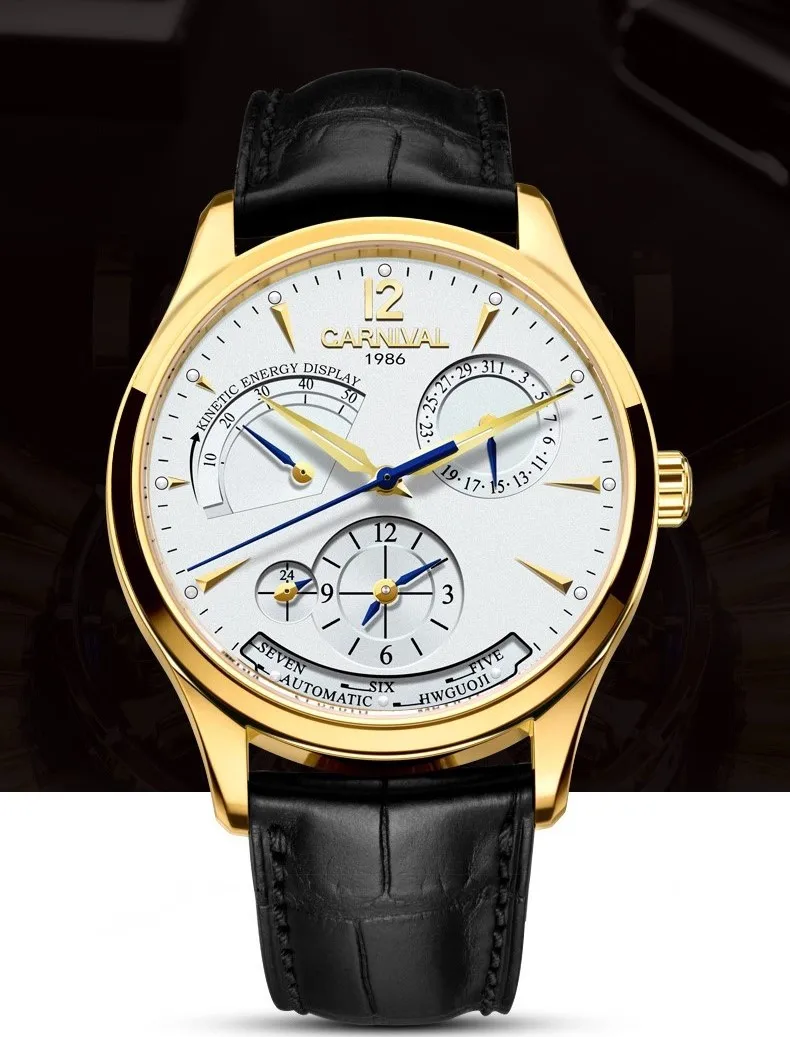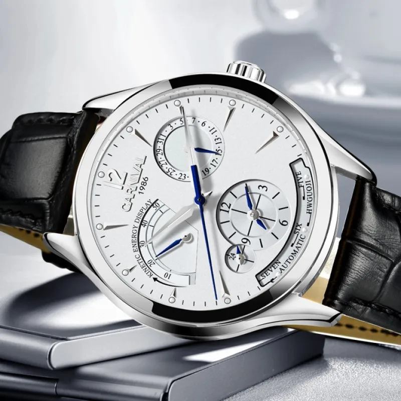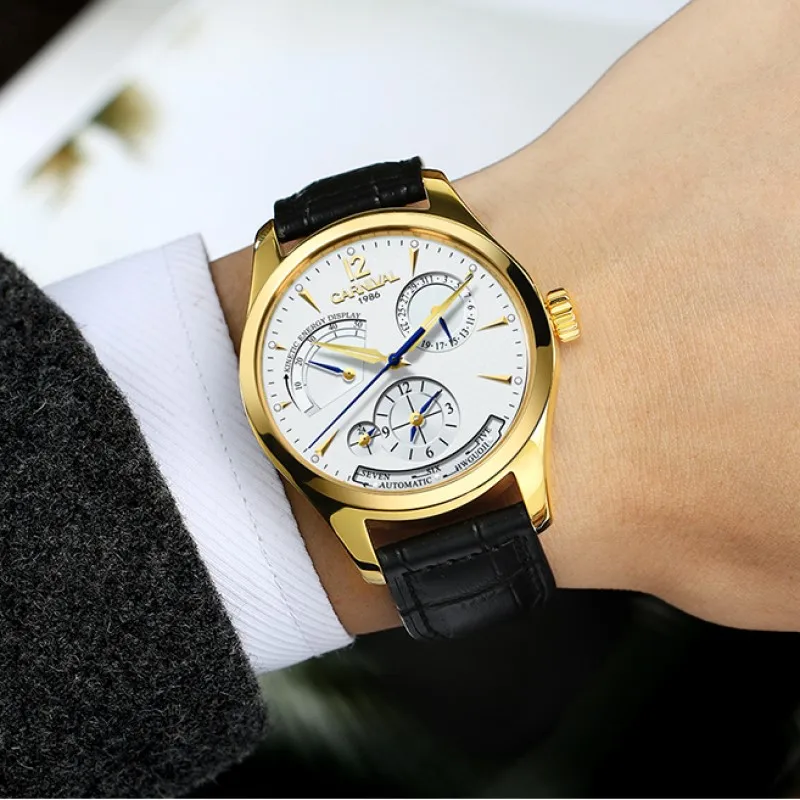 Часы наручные мужские механические, модные водонепроницаемые деловые с сапфировым календарем и автоподзаводом, несколько часовых поясов, для карнавала