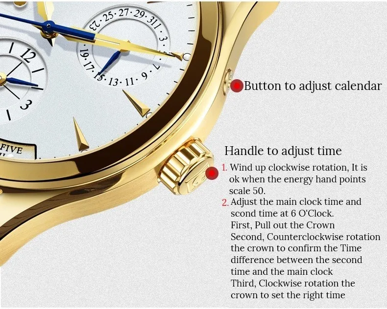 RE: вытащите заводную головку, вращайте заводную головку против часовой стрелки, чтобы отрегулировать разницу во времени между основными и вторыми часами (в 6 часов), после того, как изменится разница во времени, вращение головки по часовой стрелке для настройки нужного времени. Затем настраивается мировое время.