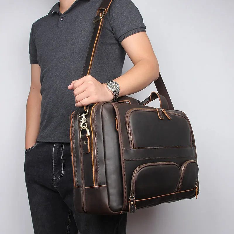 Портфель мужской из натуральной кожи Crazy horse, многофункциональный портфель для ноутбука 17 дюймов, винтажный деловой саквояж, Большая Дорожная Спортивная сумка на плечо