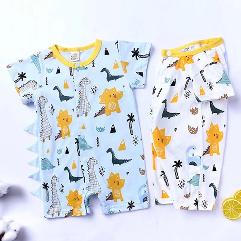 Детские комбинезоны с динозавром летние комбинезоны с коротким рукавом для девочек Хлопковая пижама с принтом для новорожденных детей мультяшный комбинезон для мальчиков