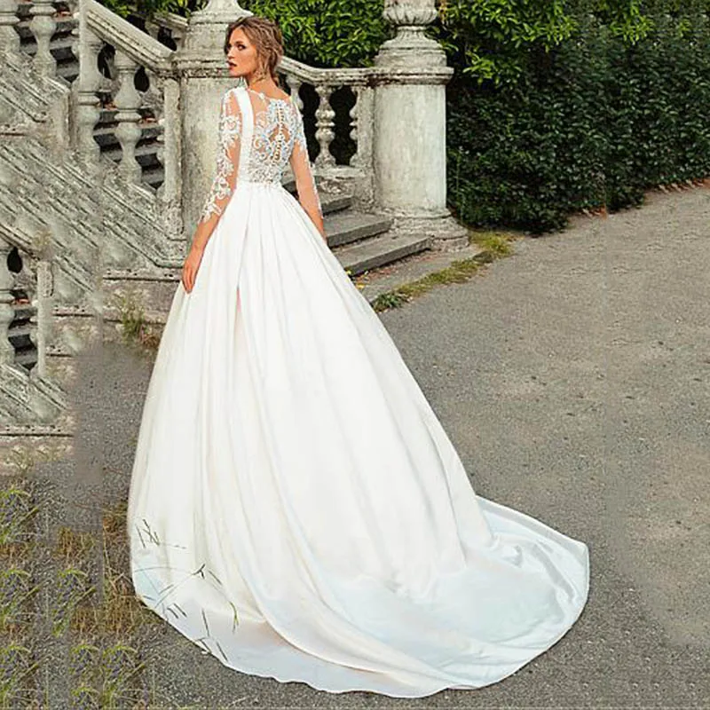 Женское свадебное платье с длинными рукавами, Кружевная аппликация ...