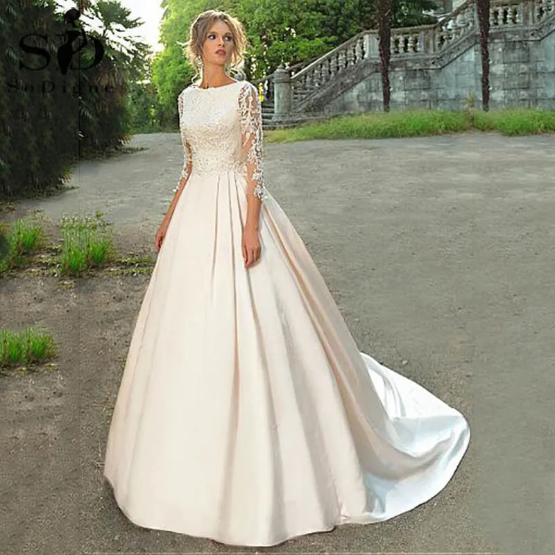 Атласное Бальное Платье soworthy, простое кружевное свадебное плать...