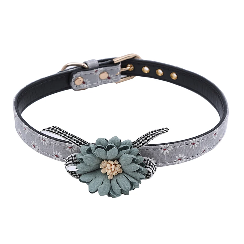 Цветочный ошейник для собак милые ошейники для щенков розовый серый Хризантема бант из искусственной кожи галстук-бабочка для кота шейный ремень Регулируемый