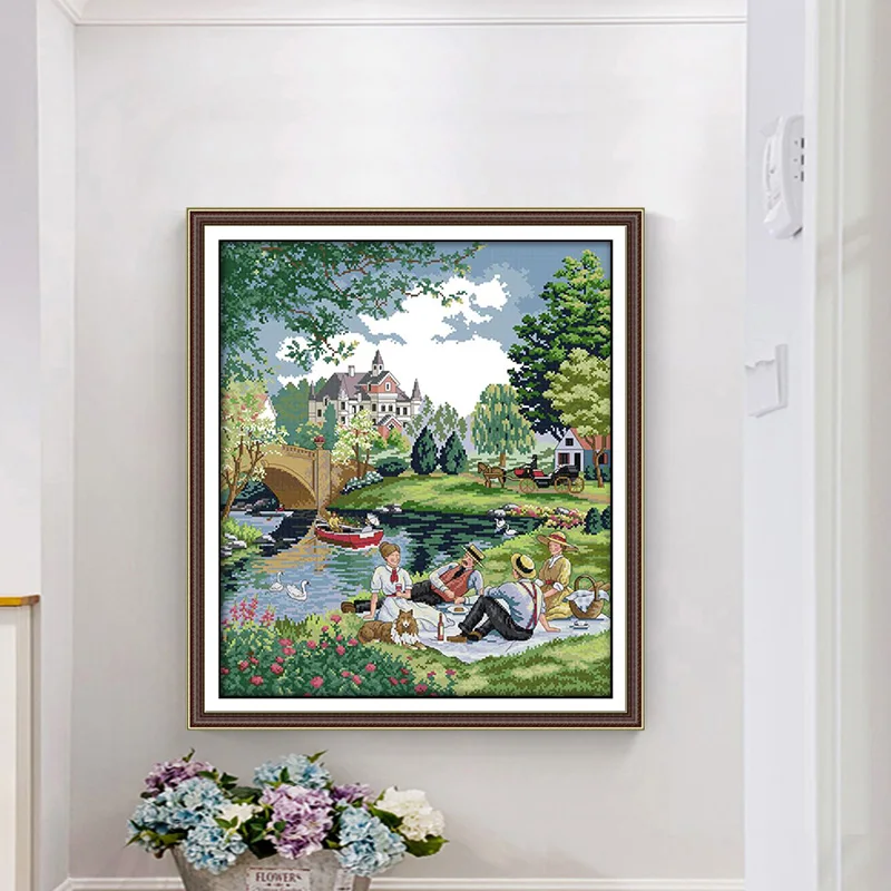 Набор для пикника, пикника, пейзажа, вышивки крестиком, 14ct, 11ct, печать, холст, вышивка, сделай сам, ручная работа, рукоделие
