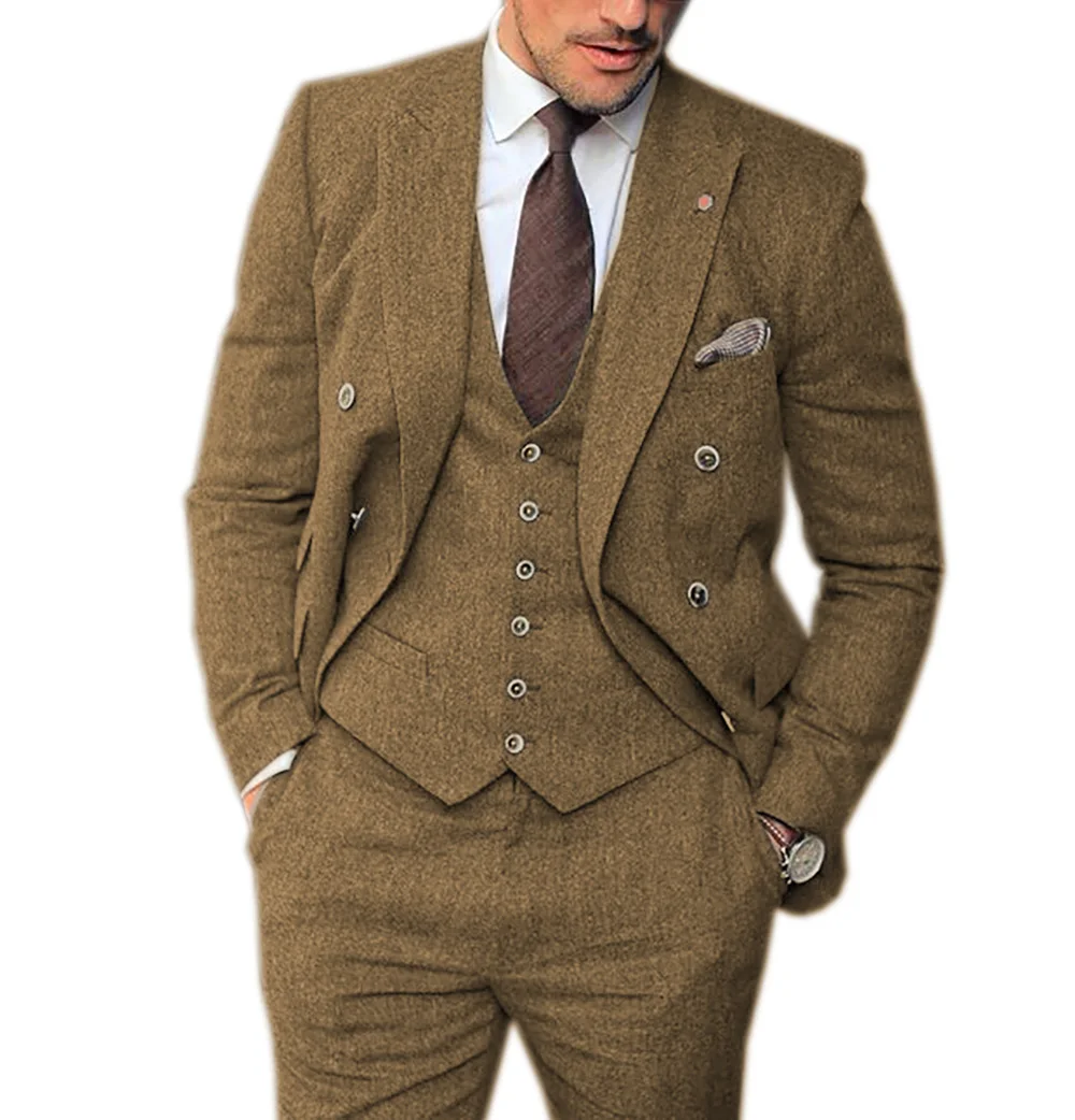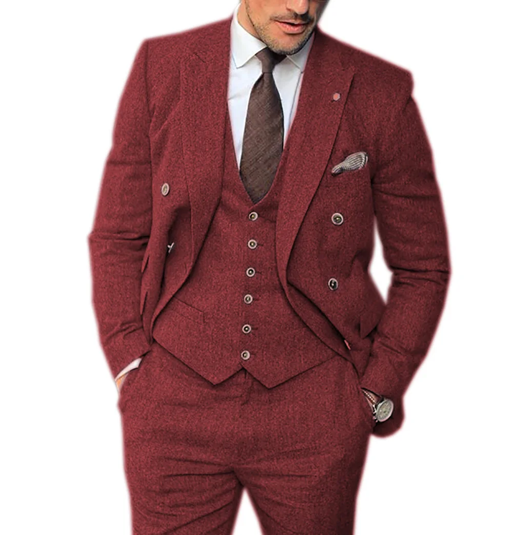 Смокинг мужской формальный в елочку, смокинг с лацканами, однотонная текстура для джентльмена, классический дизайн, для деловых встреч, 3-шт