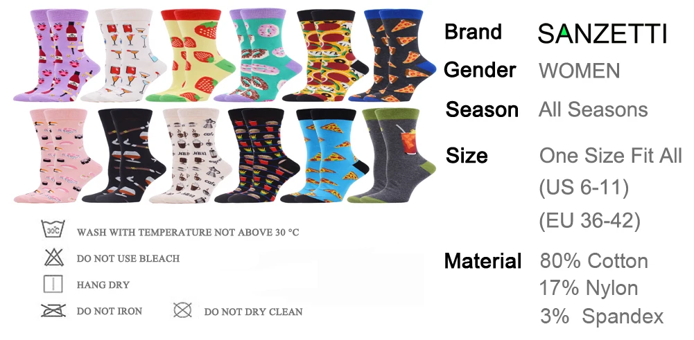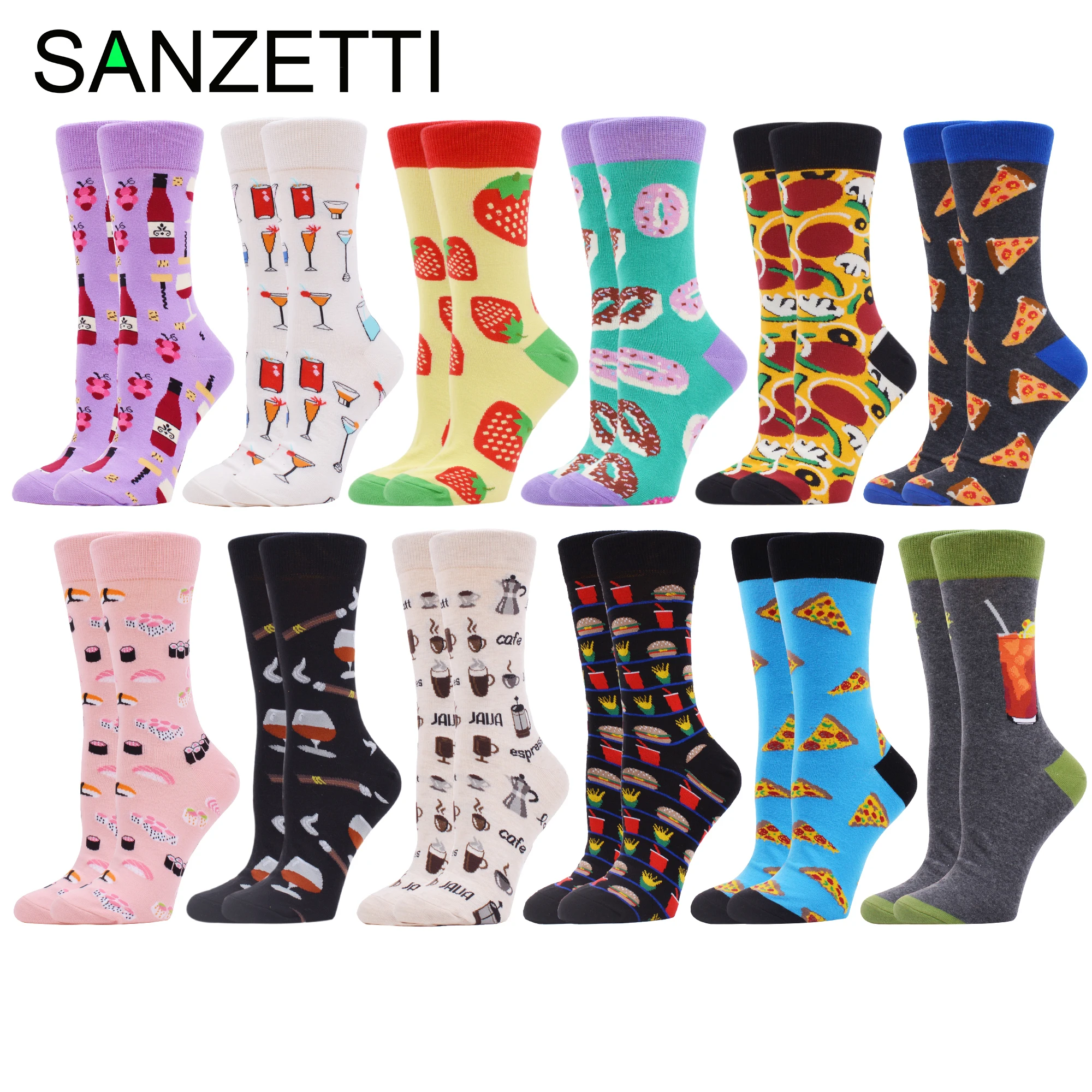 SANZETTI 12 пар Смешные Женские носки из чесаного хлопка пончики коктейльный узор Веселые красочные носки новинка свадебные подарки носки