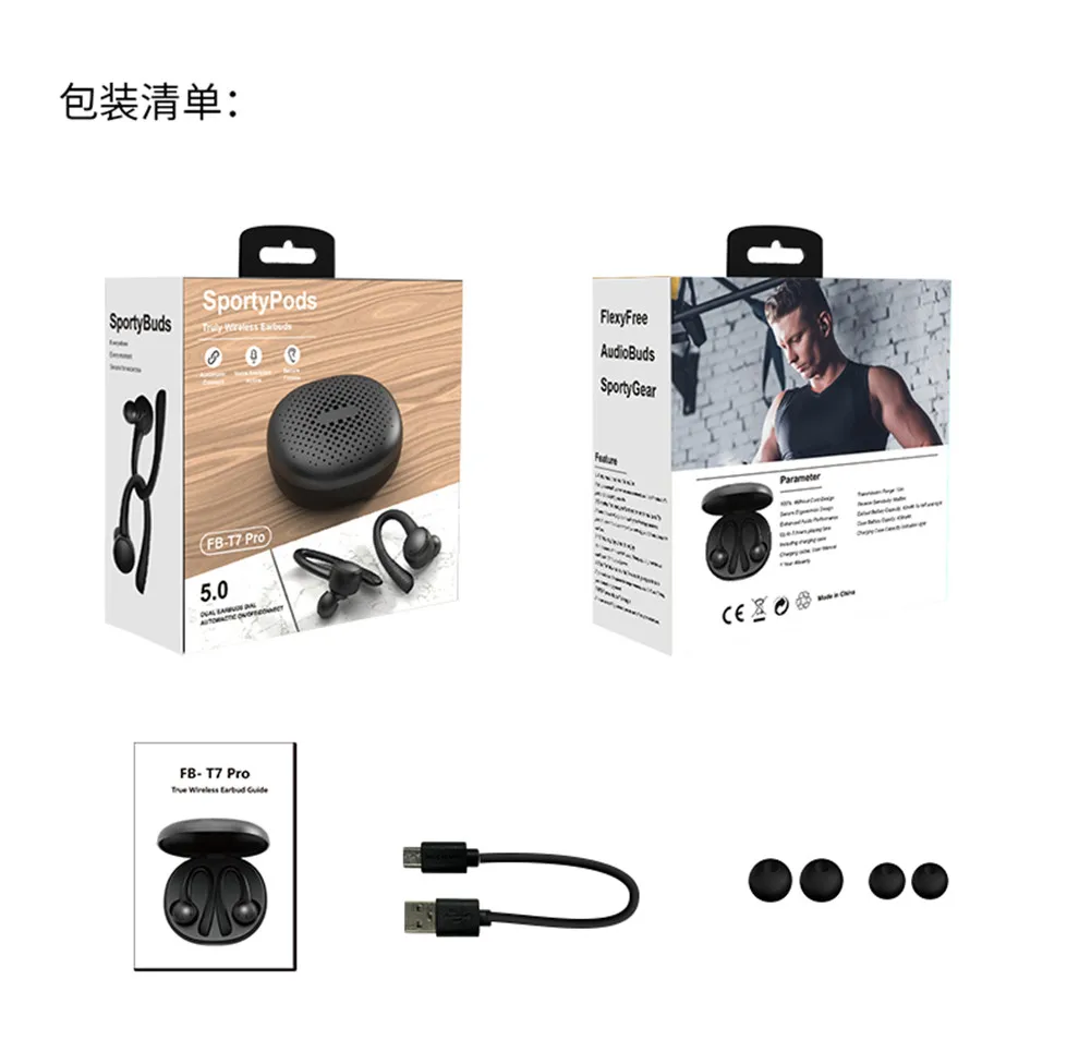 Беспроводные наушники T7 PRO, водонепроницаемые стереонаушники с Bluetooth 5,0, спортивные наушники, подходят для всех смартфонов