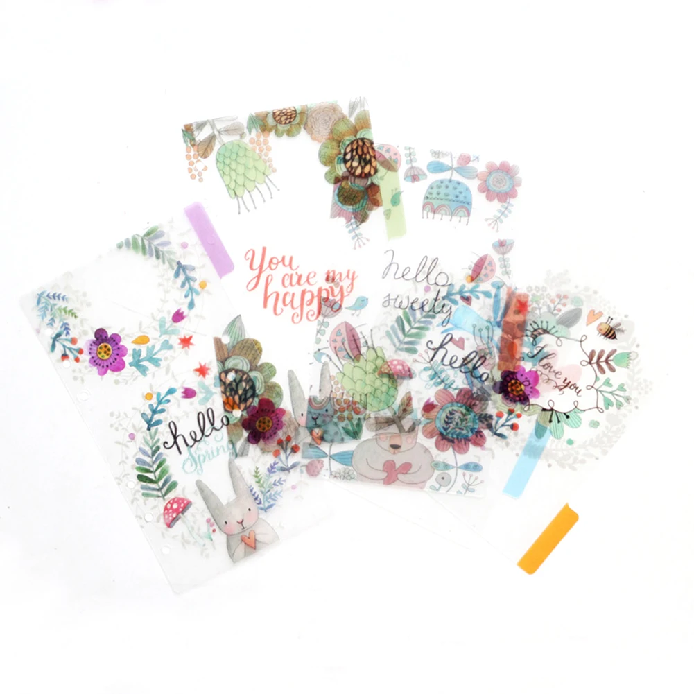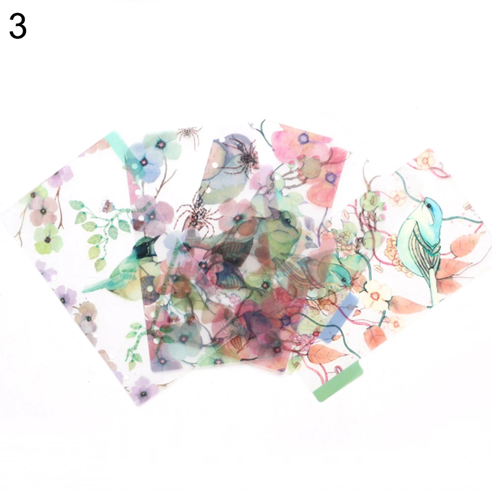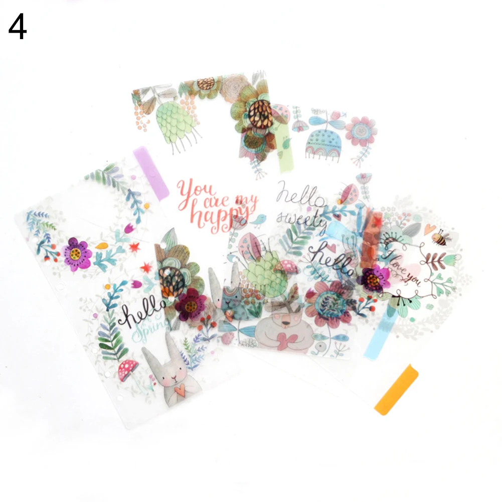 5 шт. A5/A6 цветочный разряд планировщик указатель страницы ноутбук полупрозрачный 6-Hole Binder