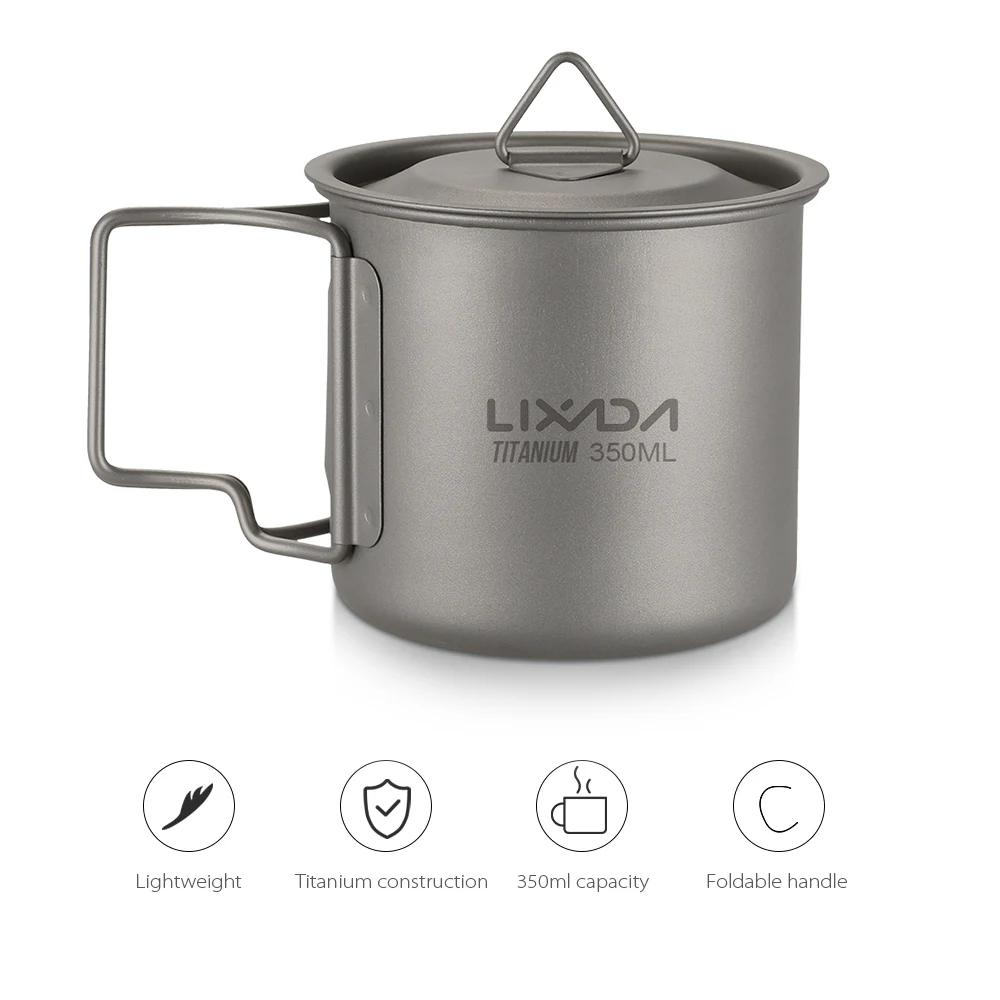 Lixada титановая чашка для кемпинга, Ультралегкая портативная чашка для кемпинга и пикника, чашка для воды со складной ручкой, титановая чашка для кемпинга