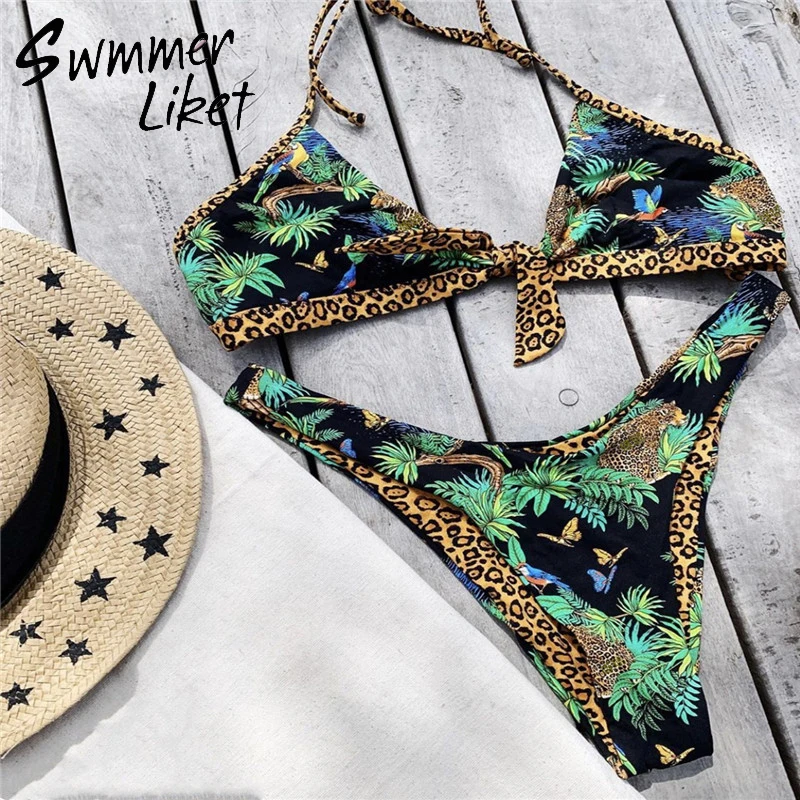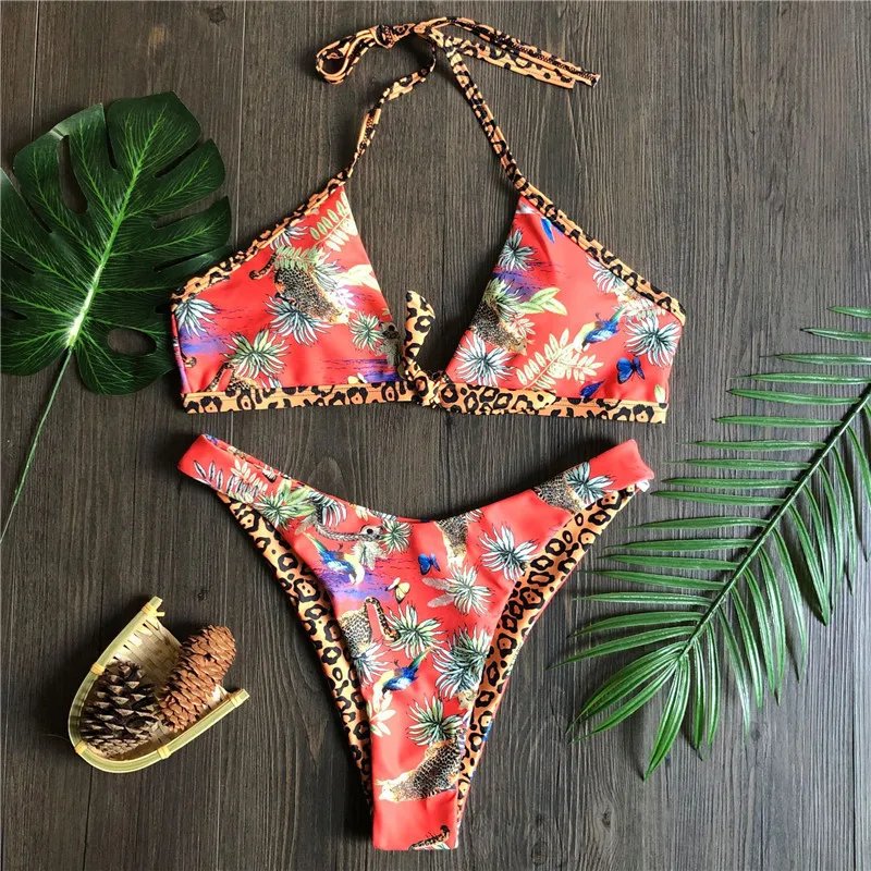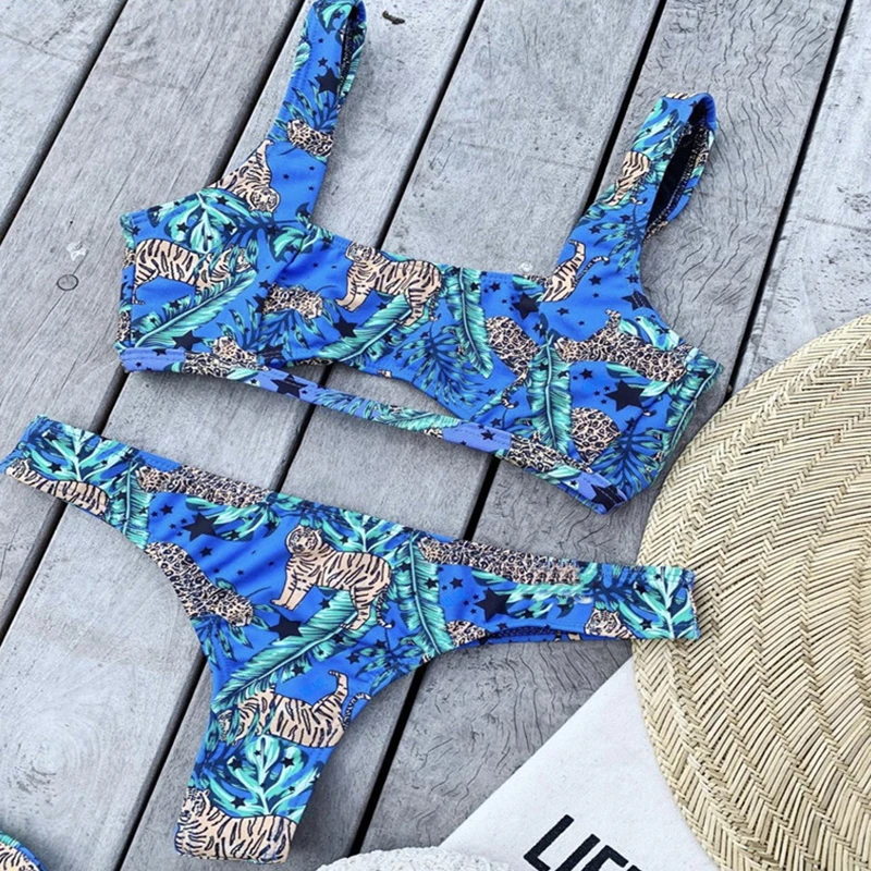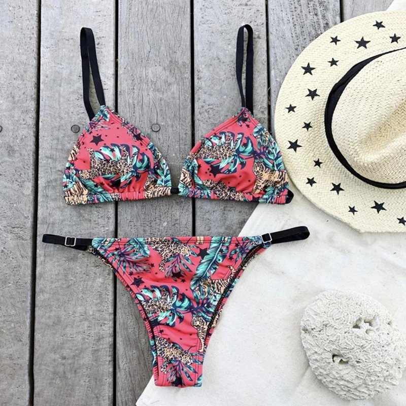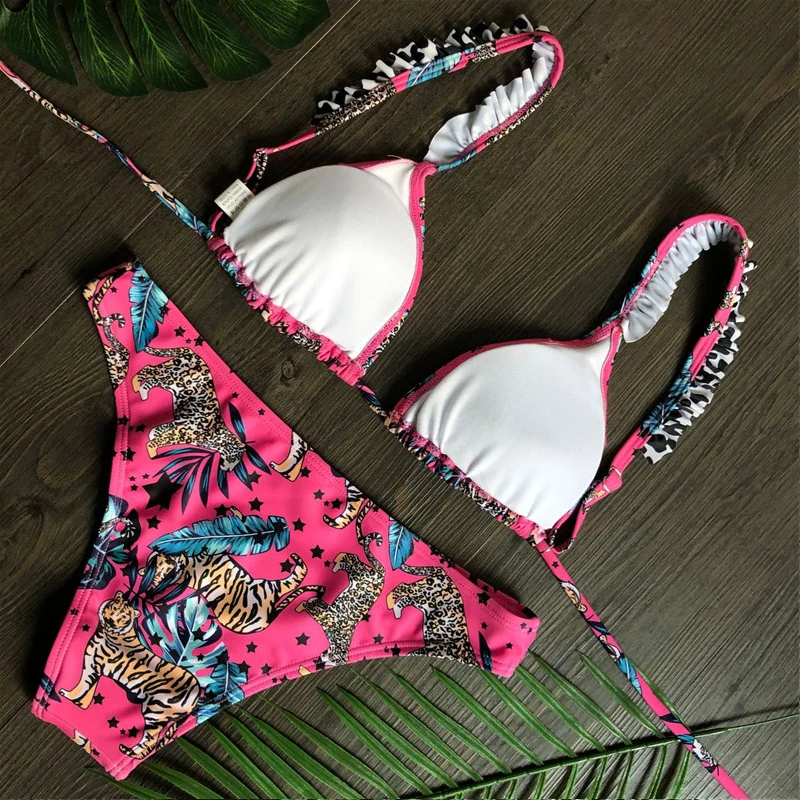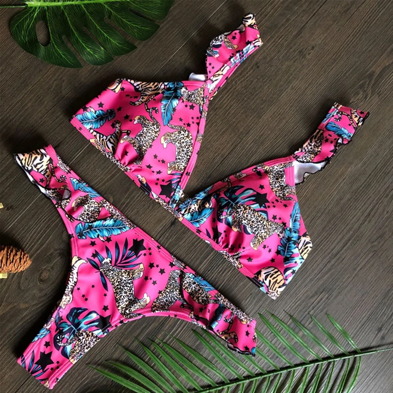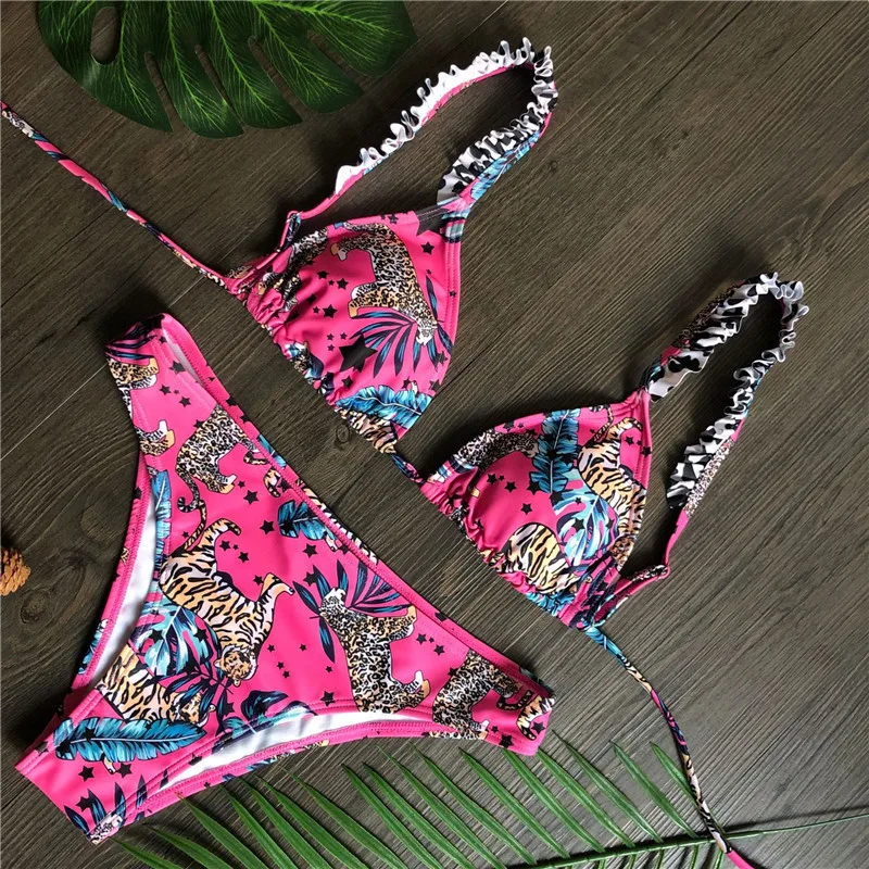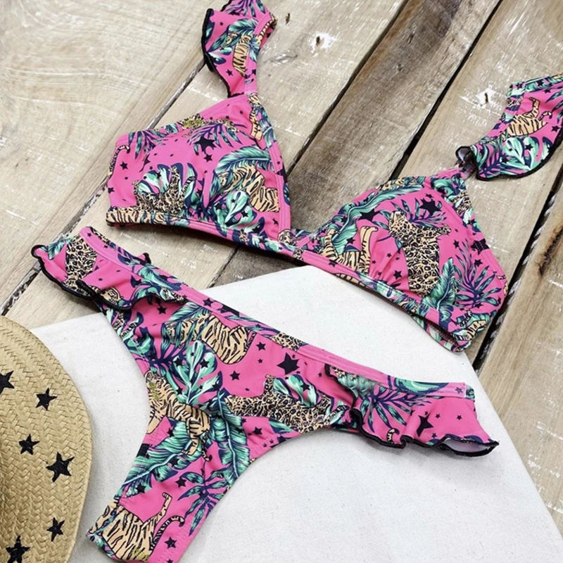 Сексуальный комплект бикини с оборками 2020, треугольный купальник с пуш-ап, женский купальник с принтом, женский купальный костюм, летний купальный костюм, Новинка