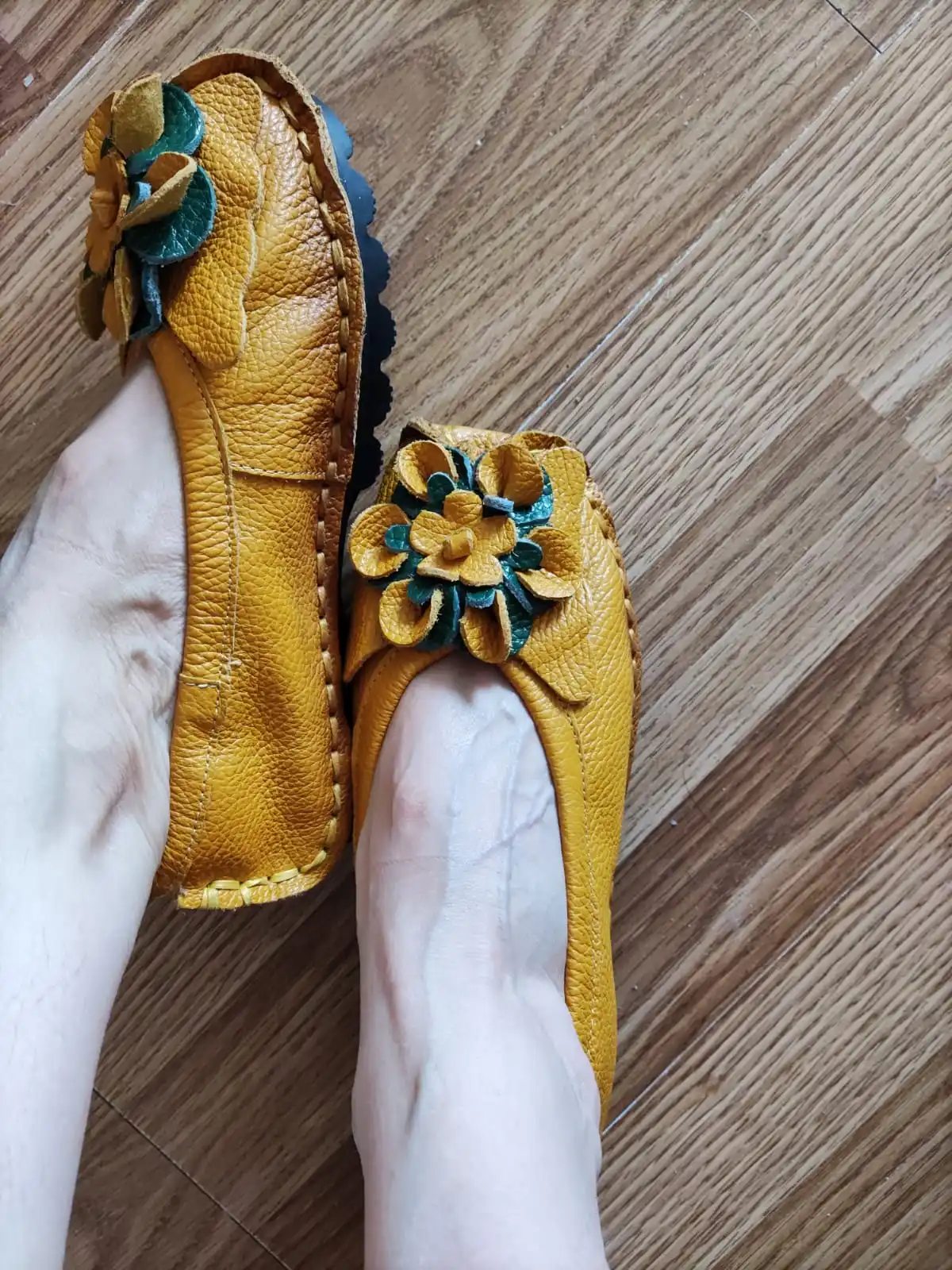 Лоферы женские с цветочным туфли на плоской подошве из натуральной кожи, балетки, повседневная обувь ручной работы, без застежки, плоская подошва, 2020