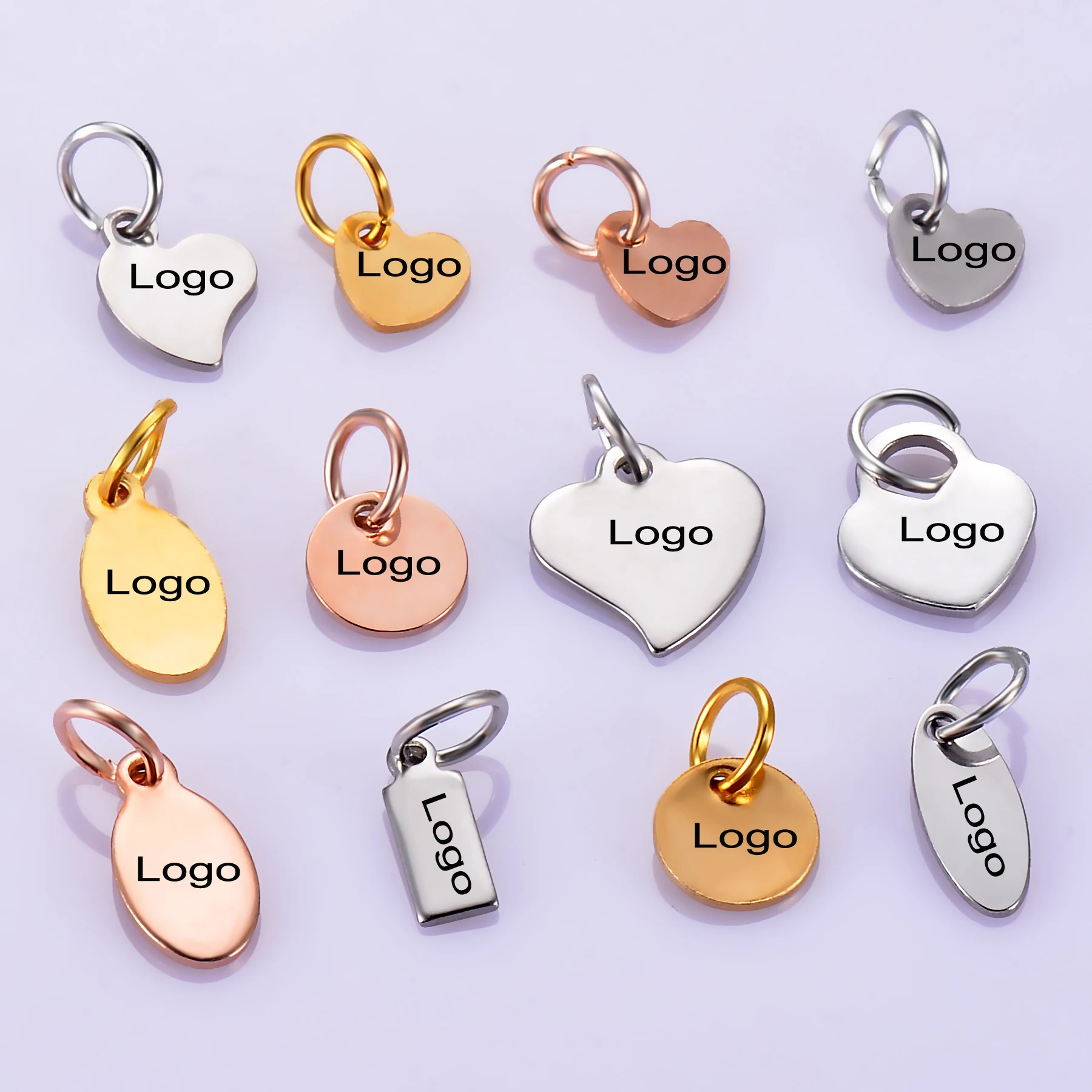 Индивидуальные маленькие логотипы из нержавеющей стали, небольшие дисковые логотипы на заказ для ожерелья, фурнитура сделай сам, цвет не выключается, 50 шт.