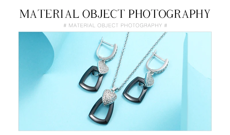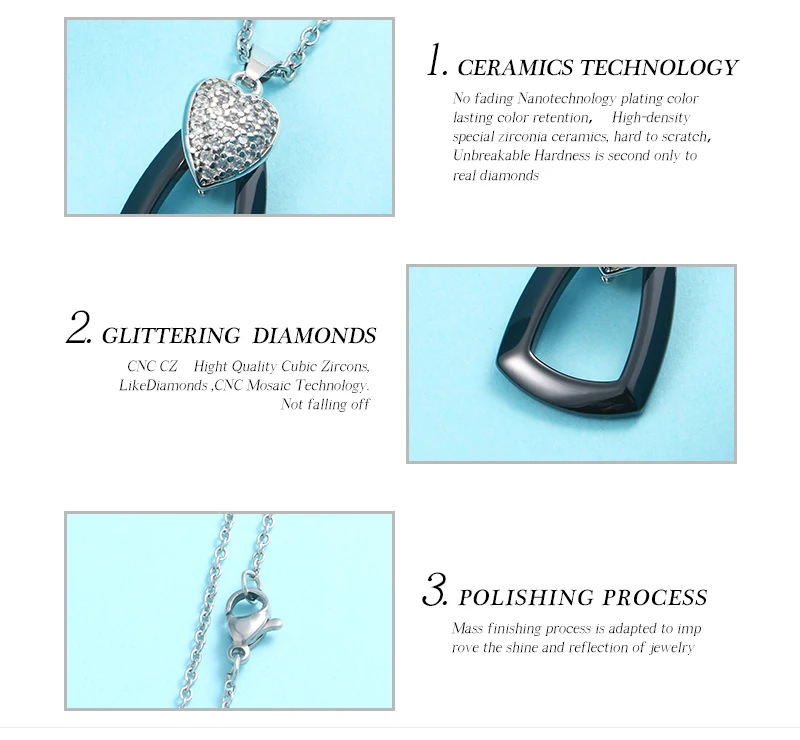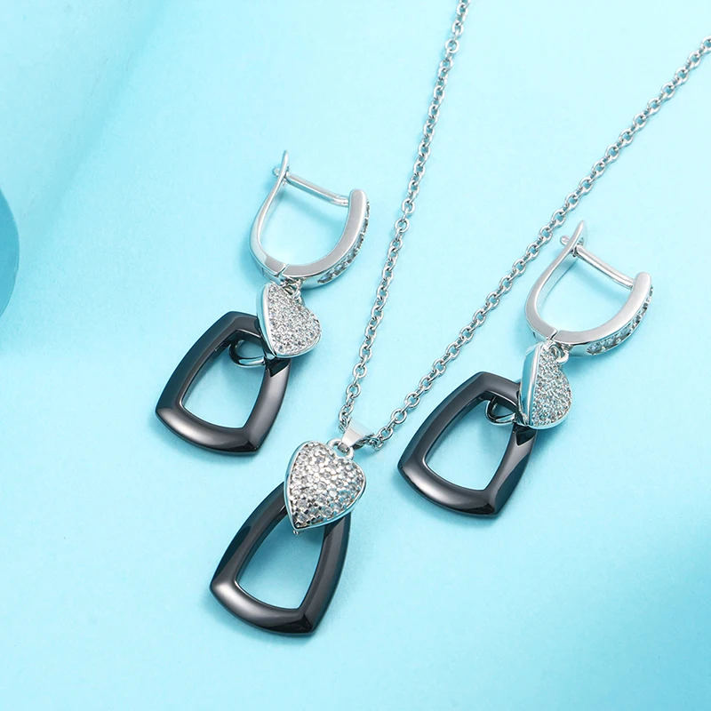 Сердца кубический цирконий геометрический кулон ожерелье и серьги набор украшений для женщин в Heatlhy керамические Ювелирные наборы свадебный подарок