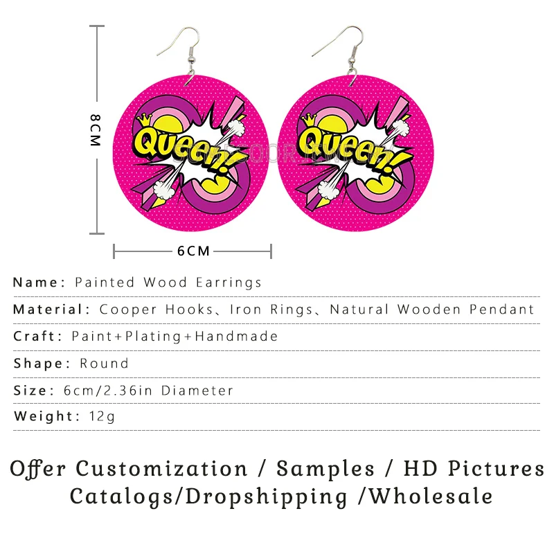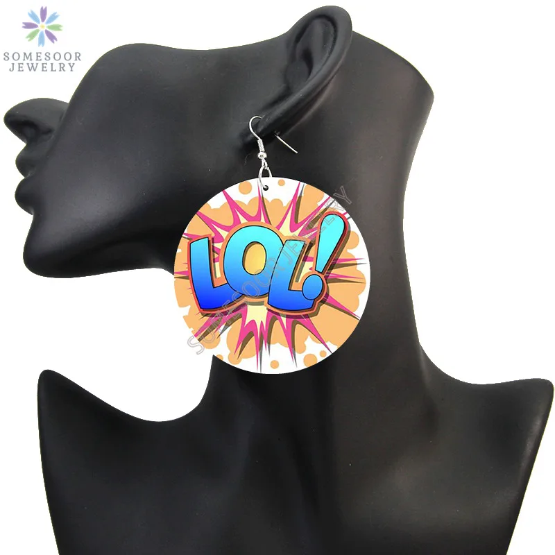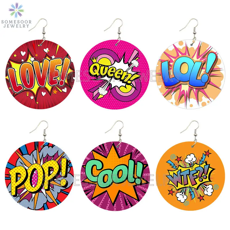 SOMESOOR двухсторонние красочные деревянные висячие серьги в стиле поп-арт LOVE BOOM QUEEN Comics винтажные стикеры дизайнерские ювелирные изделия для женщин Подарки