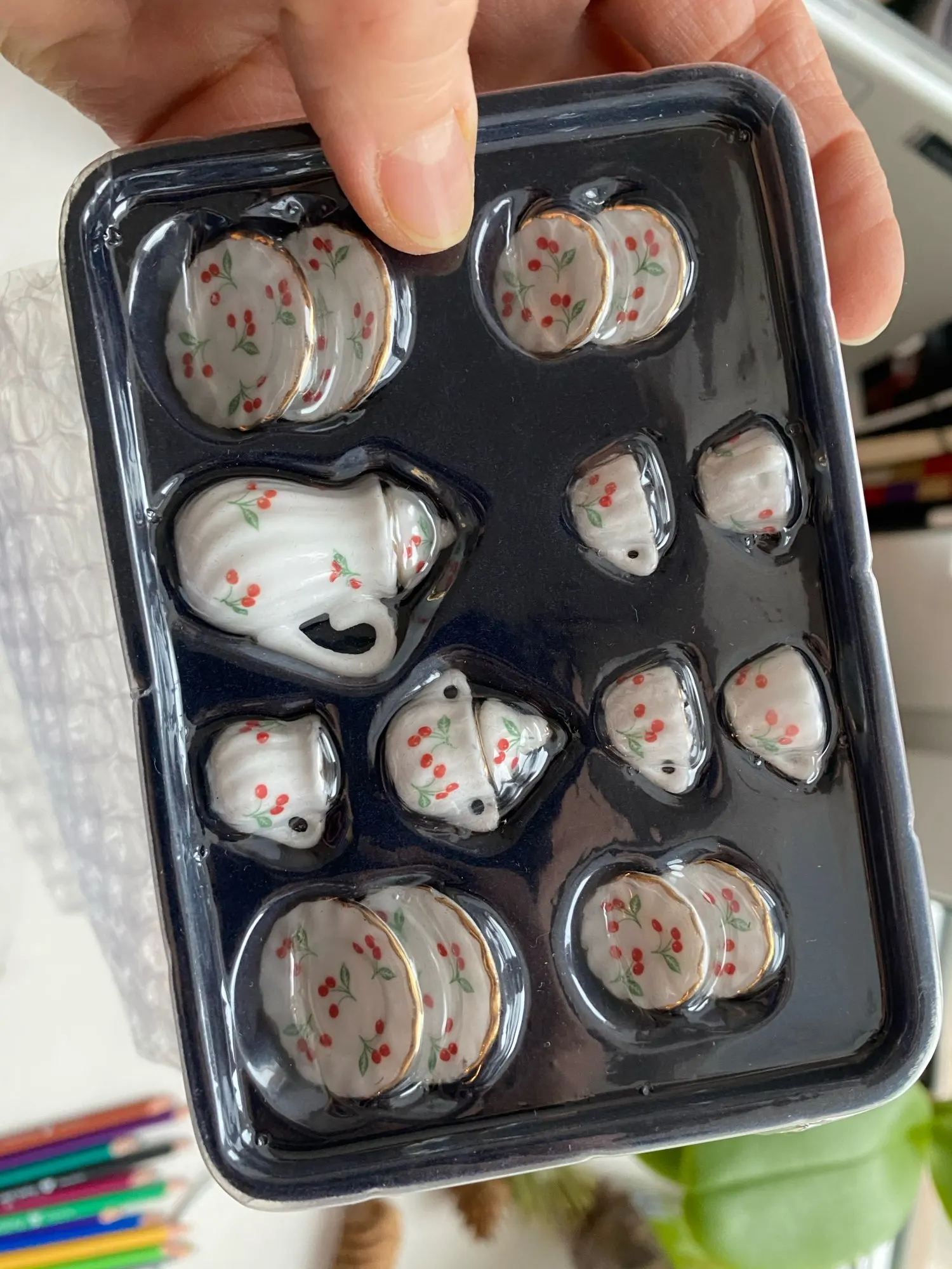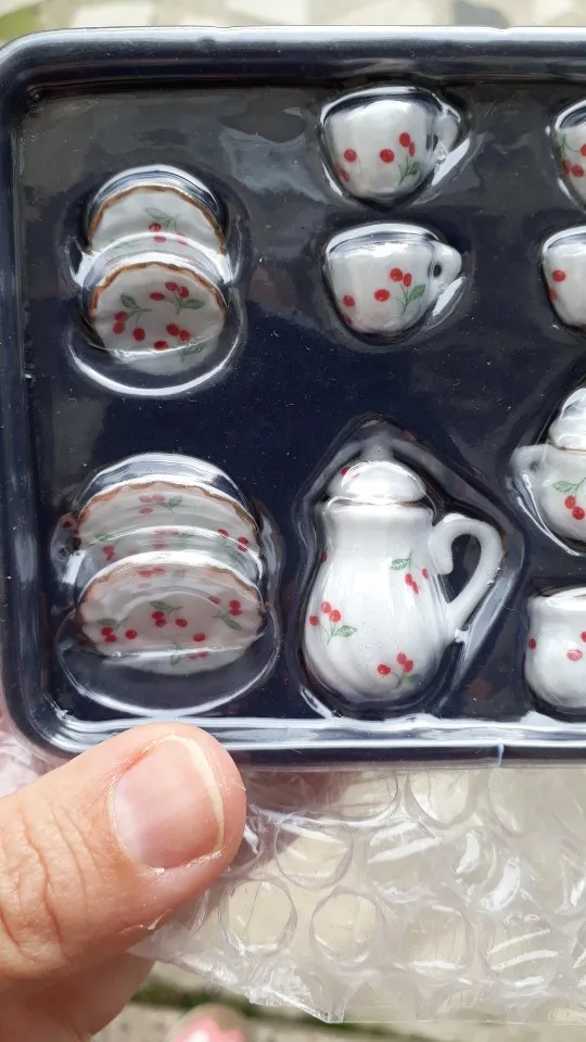 сервиз просто изумительный, как настоящий, только в маленьком варианте. но для барби, я бы сказала что он немного маловат, больше как кофейный, а не чайный. зато для куколок лол в самый раз. спасибо продавцу за такую прелесть. доставка в РБ три недели, мега быстро учитывая обстоятельства
