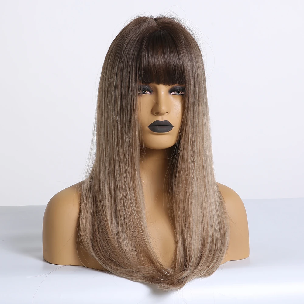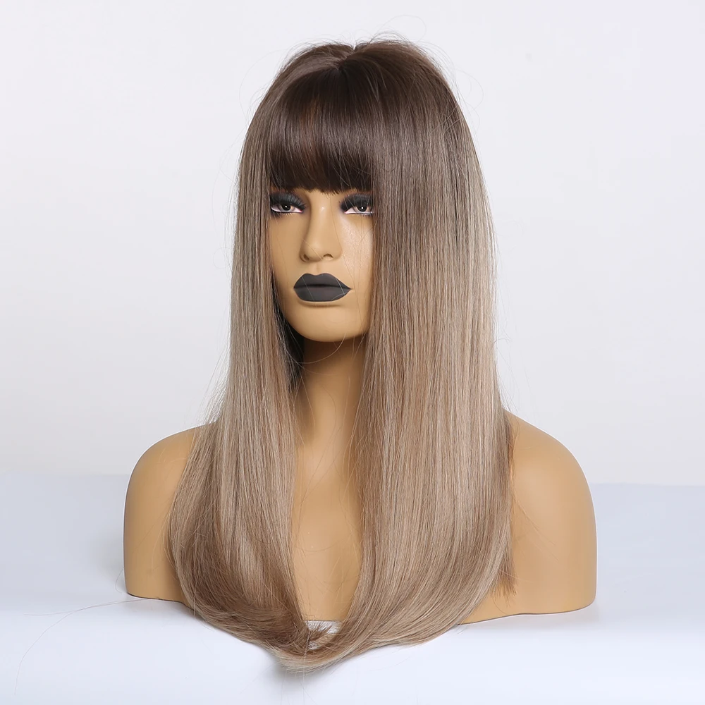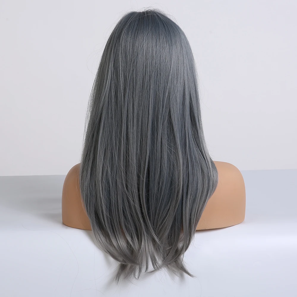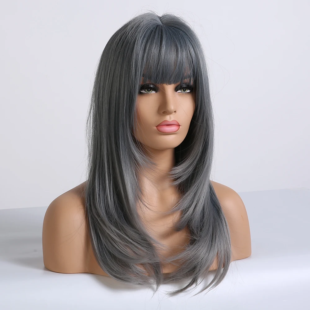 Парики для косплея из синтетических волос средней длины для женщин, жаростойкие из многослойных волос с Омбре от чёрного к светлому, с челкой