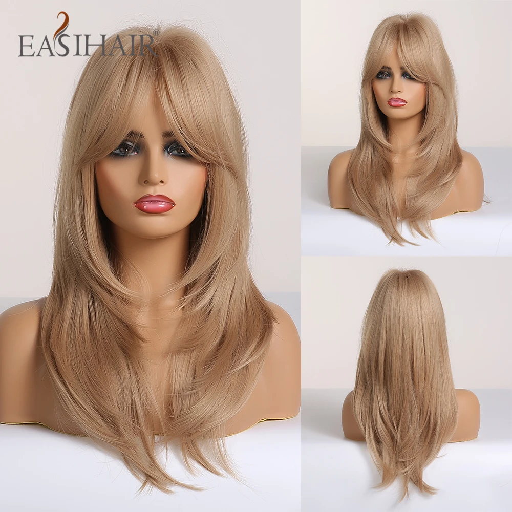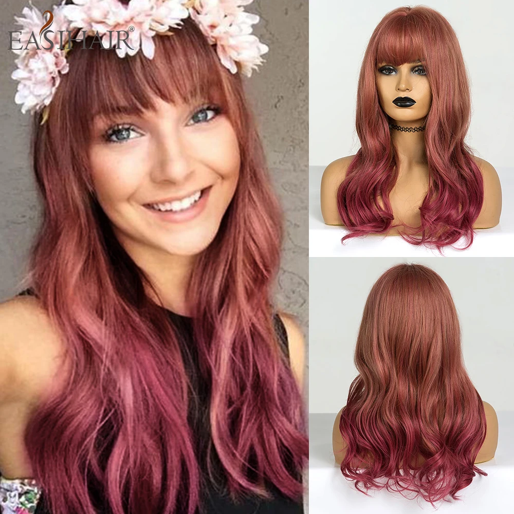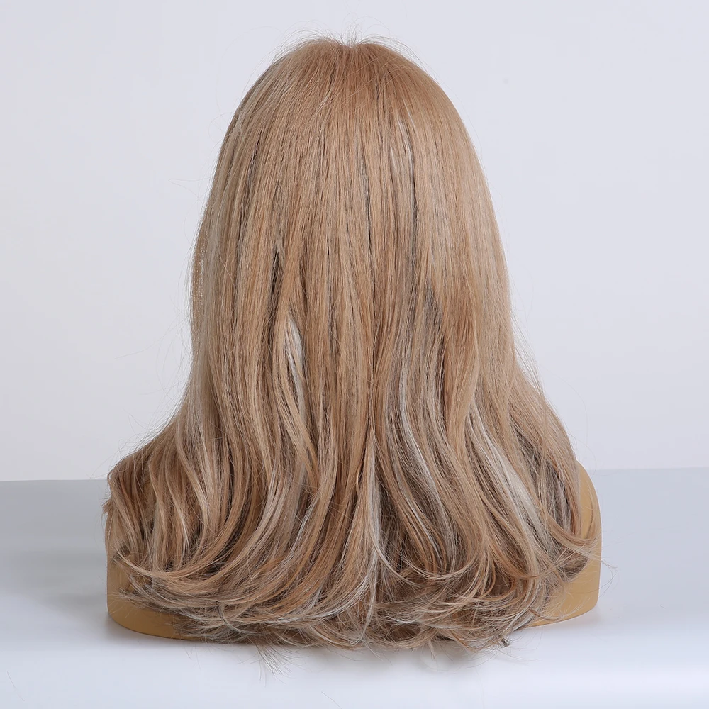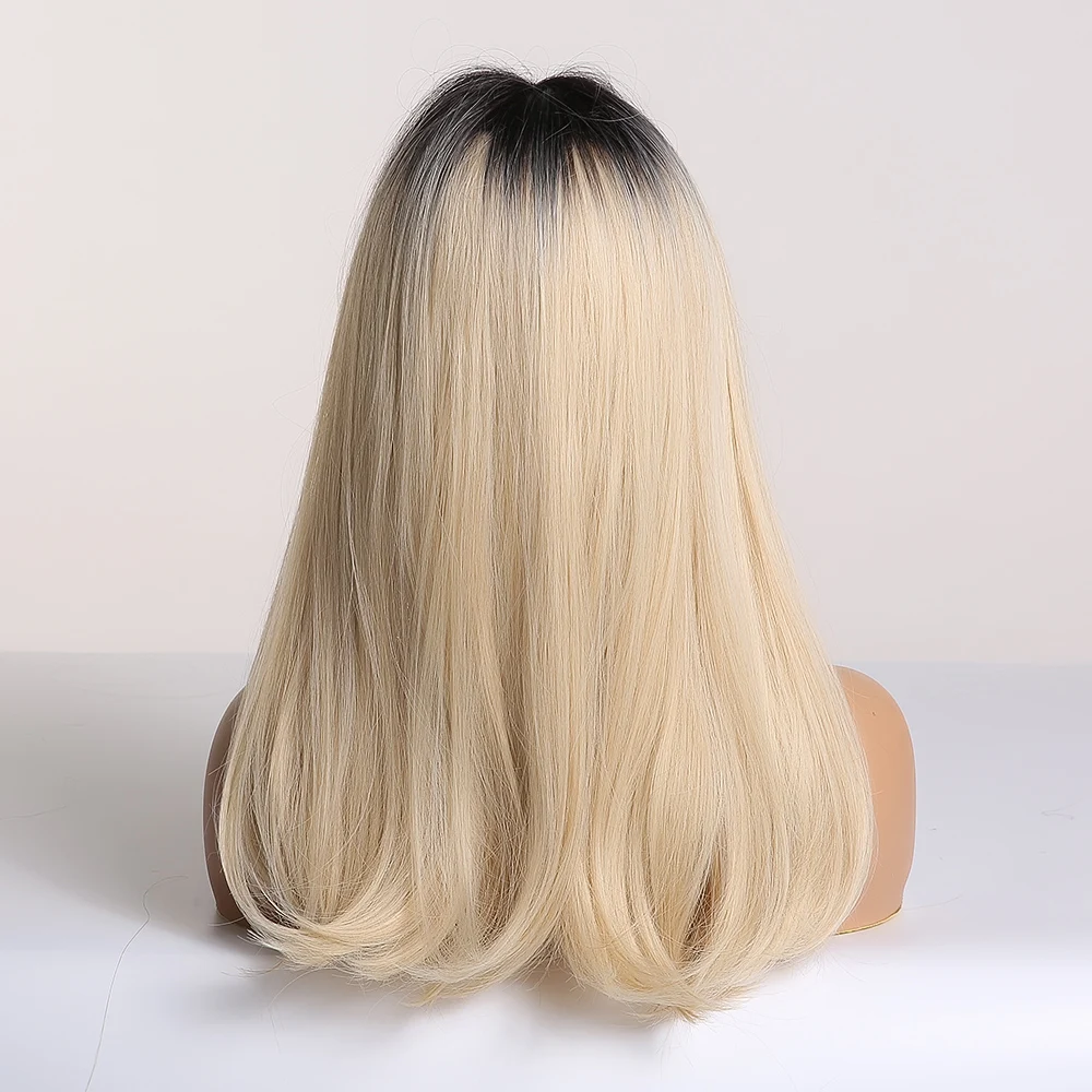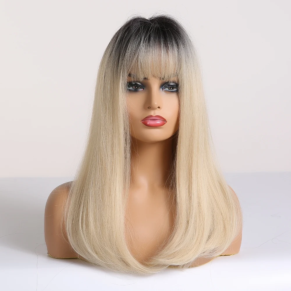Парики для косплея из синтетических волос средней длины для женщин, жаростойкие из многослойных волос с Омбре от чёрного к светлому, с челкой