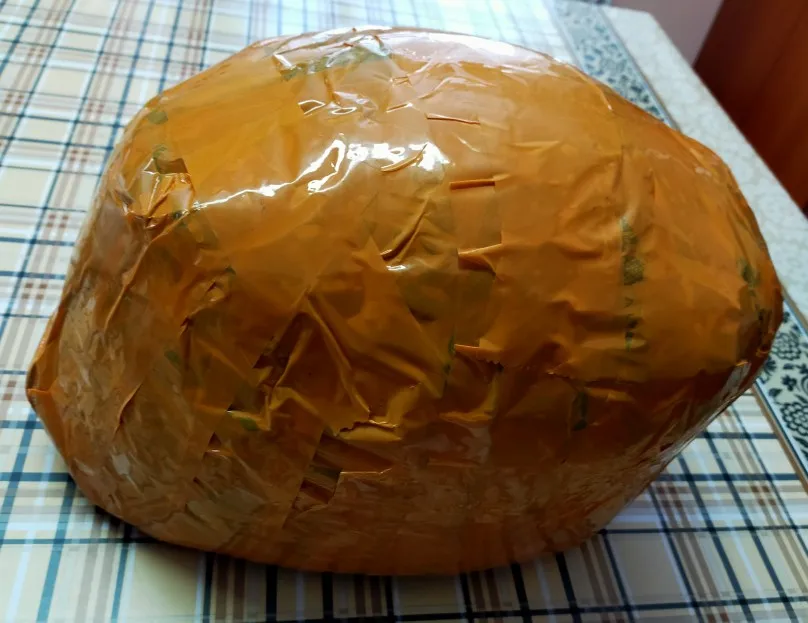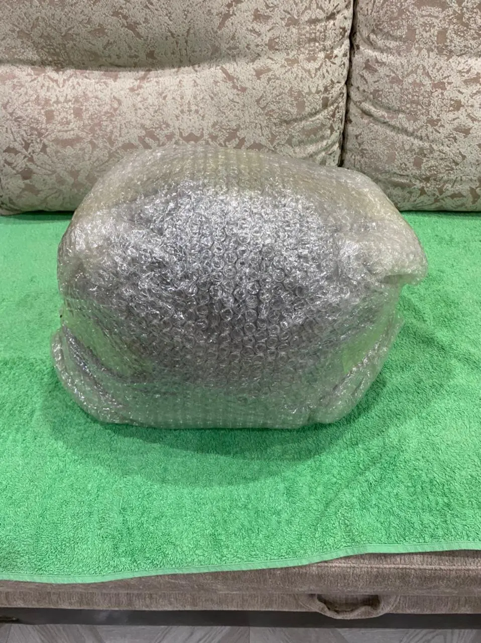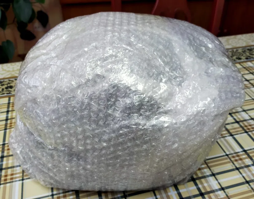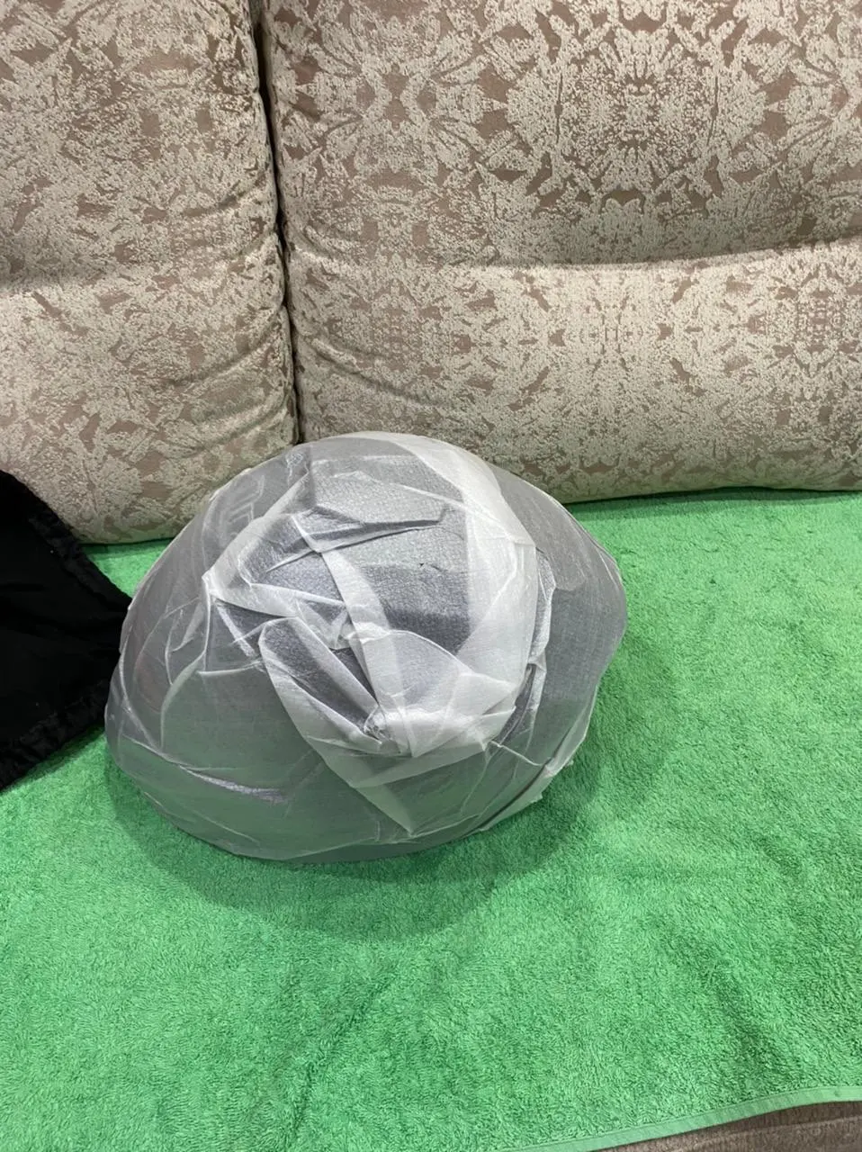 Посылка прибыла упакованной только в слой пузырчатой пленки, с бумагой вокруг и лентой. Для шлема я все равно ожидал получить его в хорошо защищенной коробке. Что касается качества шлема, то снова супер разочарован. На уровне бедра мы получаем складку, пластик. Это действительно не для защиты, но больше похоже на игрушку.