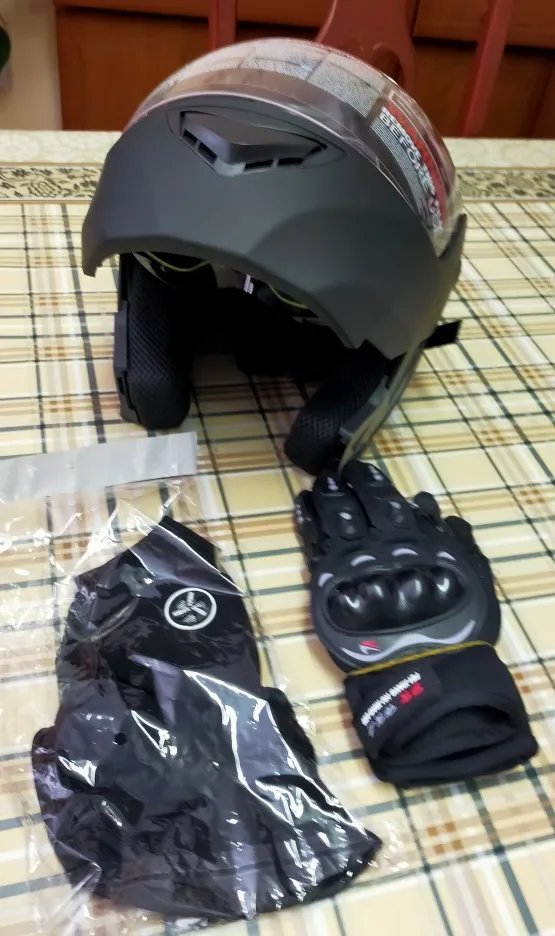 Arrived in 7 days. Хорошее общение. Хорошая упаковка. Он очень красивый и удобный, но имеет очень мало качества, он действителен только для мотоцикла, он слишком слабый, но за 34 евро больше вы не можете просить... Принесите стандартные перчатки и маску в подарок.