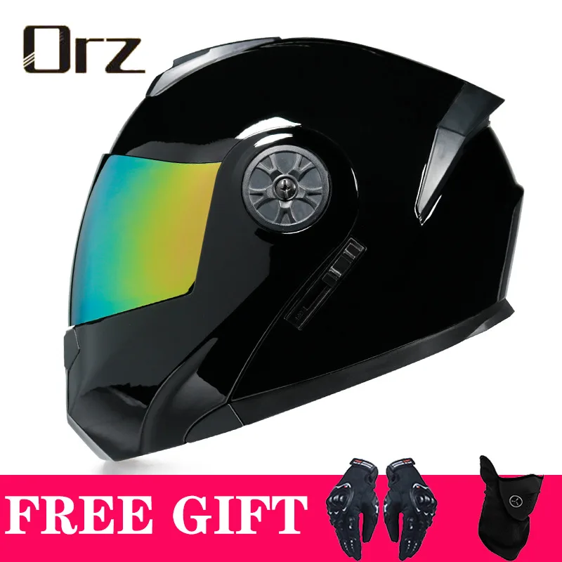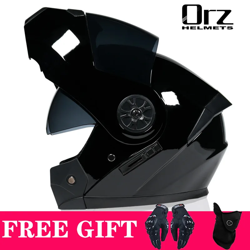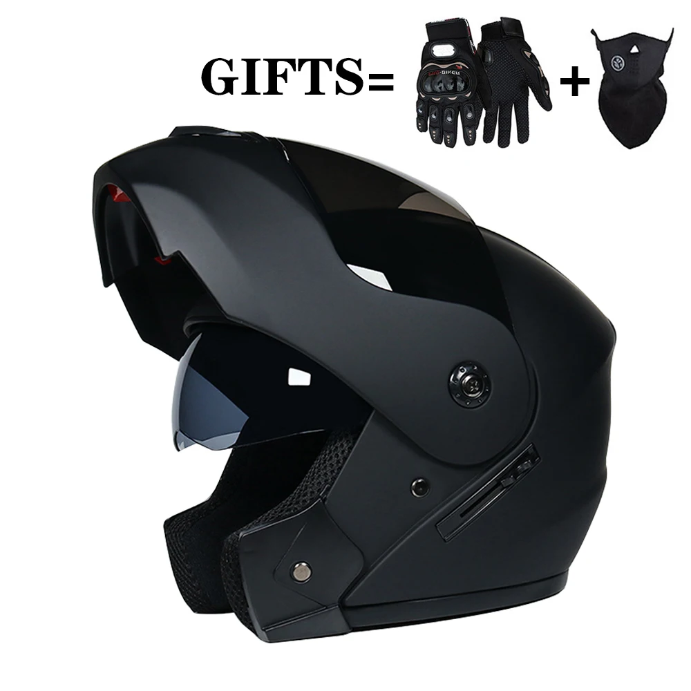 Мотоциклетный шлем унисекс, модульный, с двойными линзами, 2 подарка