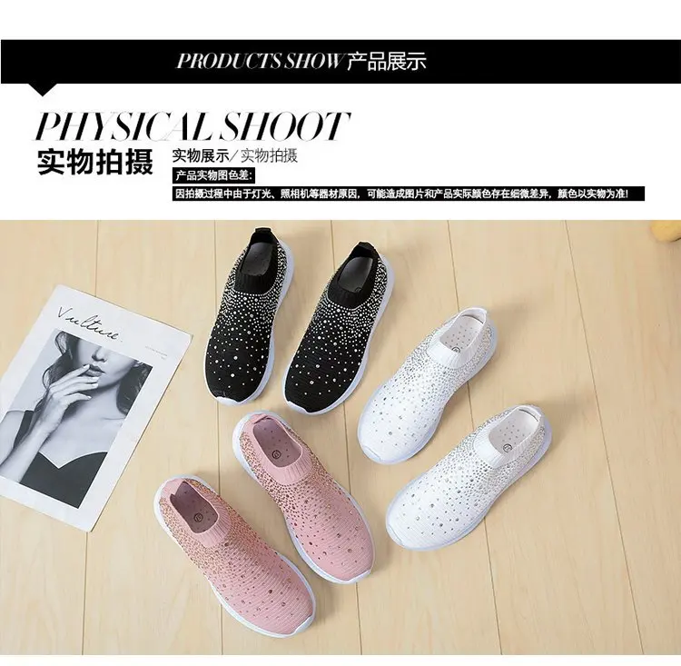 Женские кроссовки со стразами, повседневные лоферы, без шнуровки, р...