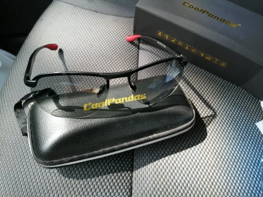 Брал очки чисто для вождения, со своей функцией справляются. Хамелеон работает, линзы затемняются медленно на солнце. Сделаны полностью из пластика, оправа покрашена под металл. Оправа достаточно широкая, на мне сидят свободно. В очки, футляр, тканевый чехол, тряпочка, тестер поляризации, ну и брелок в подарок. Товар рекомендую.