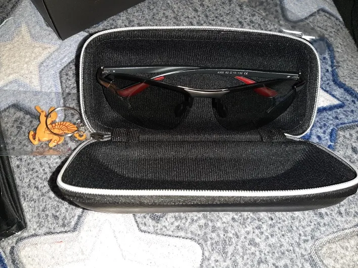 Из за почты заказ шел долго. Очки сделаны на уровне, оправа металлическая удобная. В комплекте две салфетки, чехол, тест поляризации и брелок.